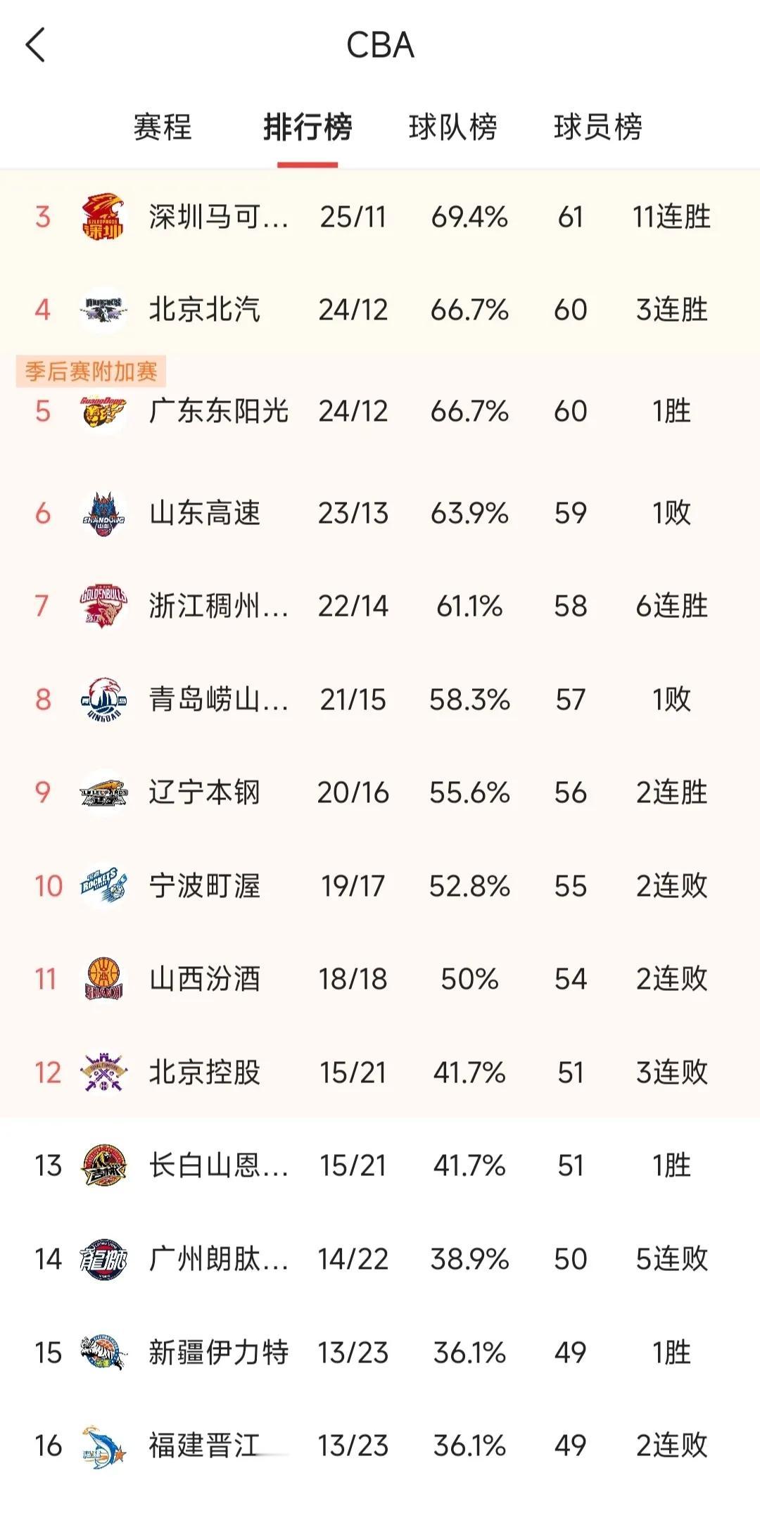 吉林目前排名十三,跟排十二的北控一样积分,保持着进季后赛希望。