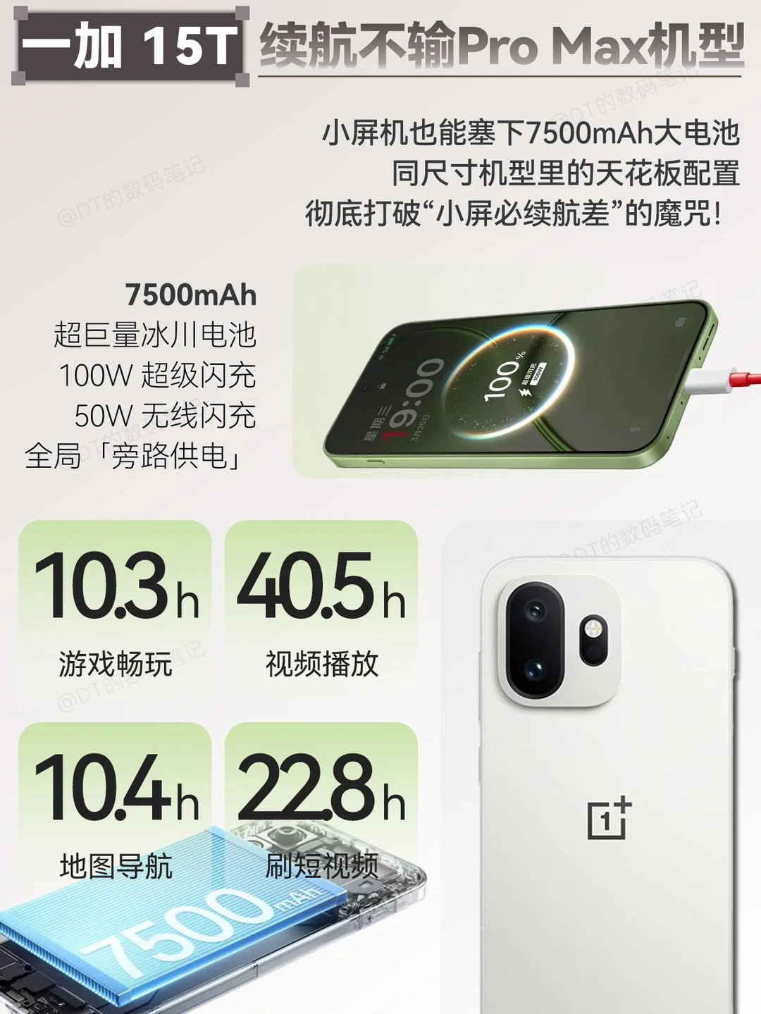 整体来说~这次一加 15T补足小屏短板!游戏性能、续航、影像、手感全面升级,直接定义小屏旗舰新标准