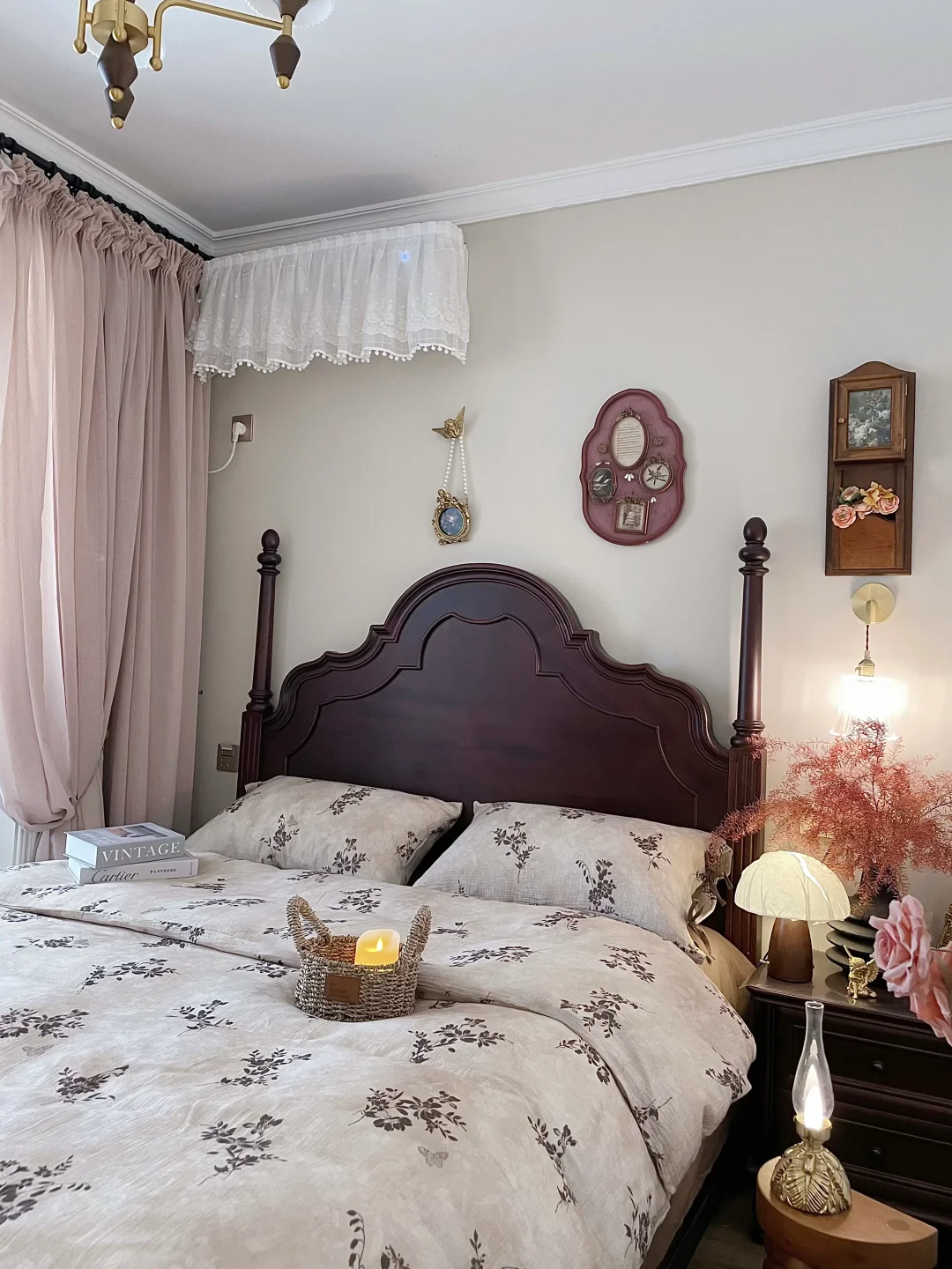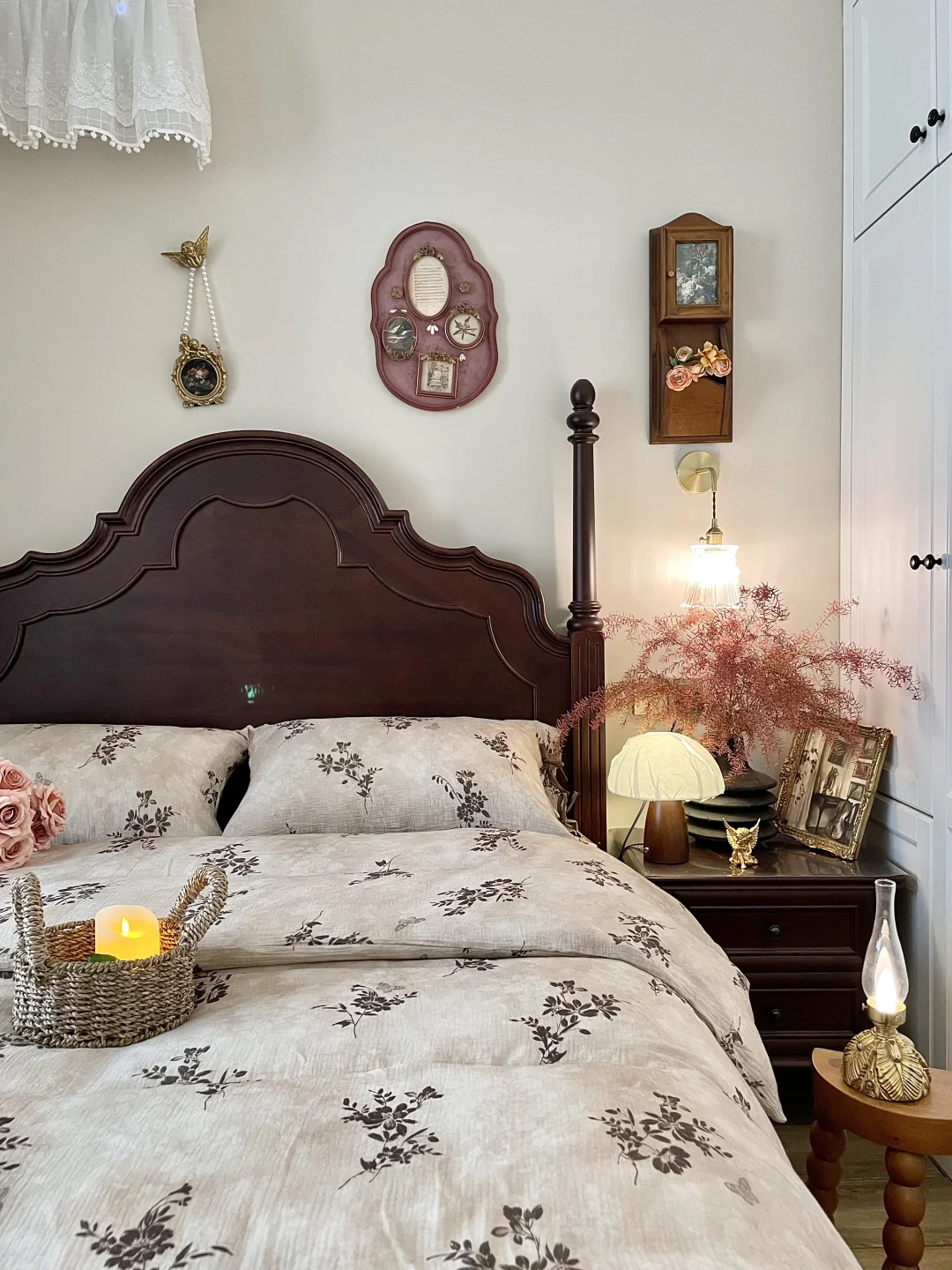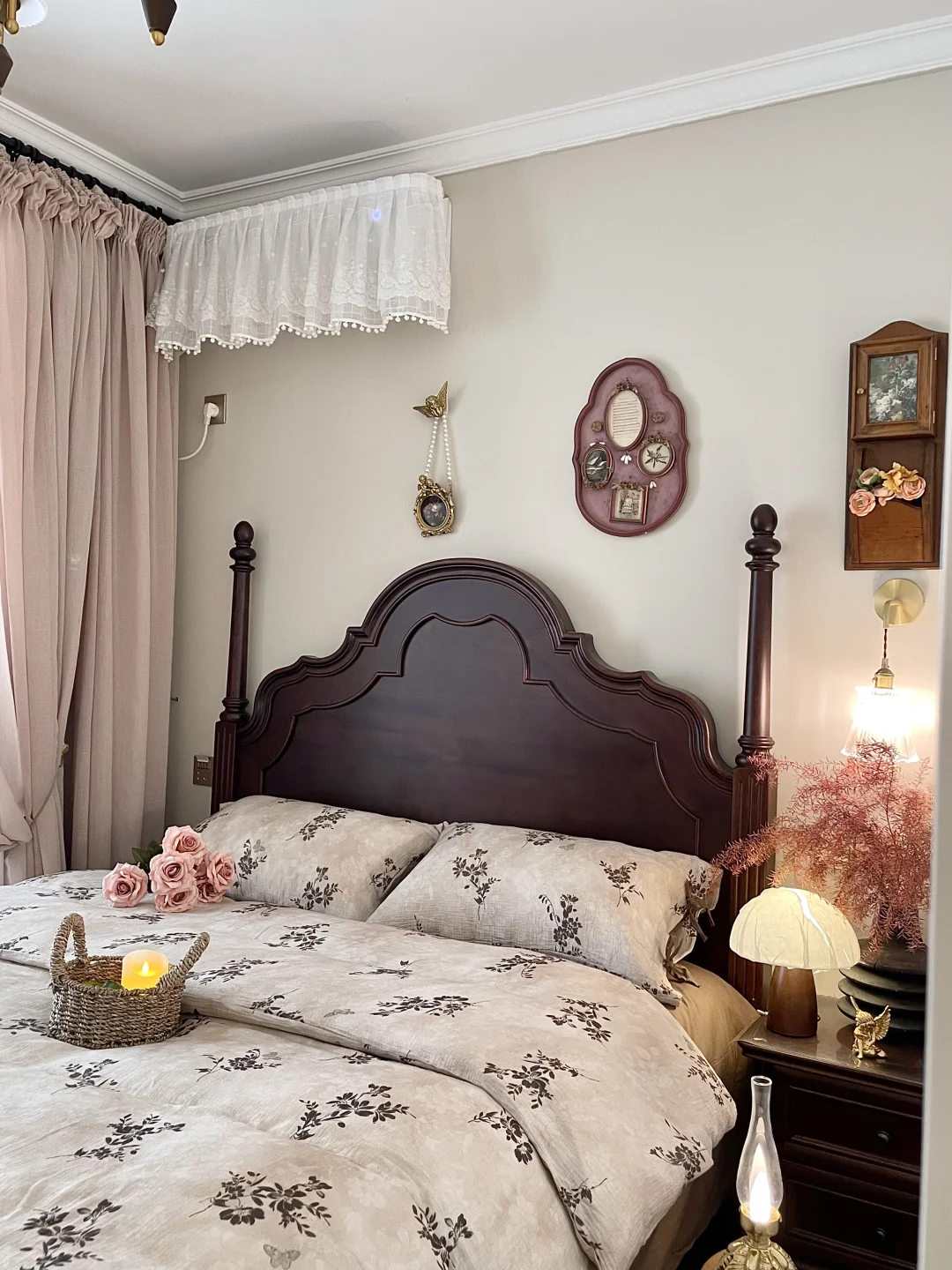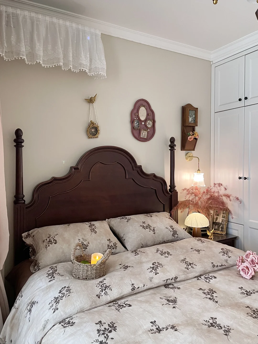 精心挑选的复古实木贝拉床,是卧室的灵魂