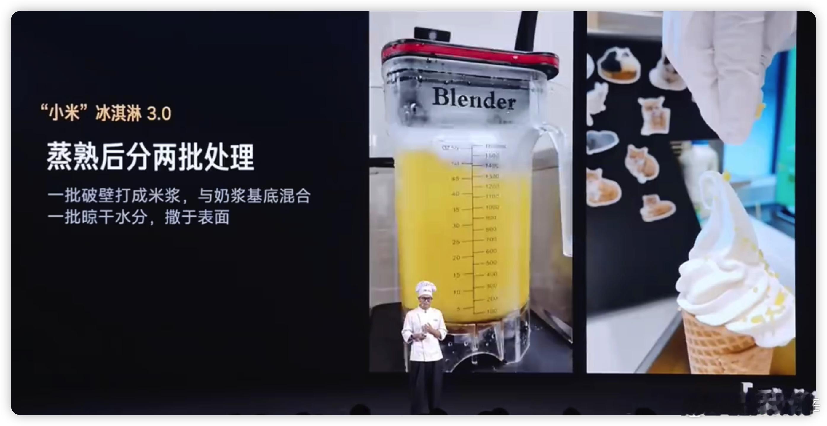 小米食堂今天在价值观大会上整了个新活儿,出了个「小米冰淇淋」。据说真把小米融进冰激凌里面了,还沿用了手机那套命名,分标准版、Pro版和Max版,价格从5块9到8块9,这Max版送三根饼干也是绝。