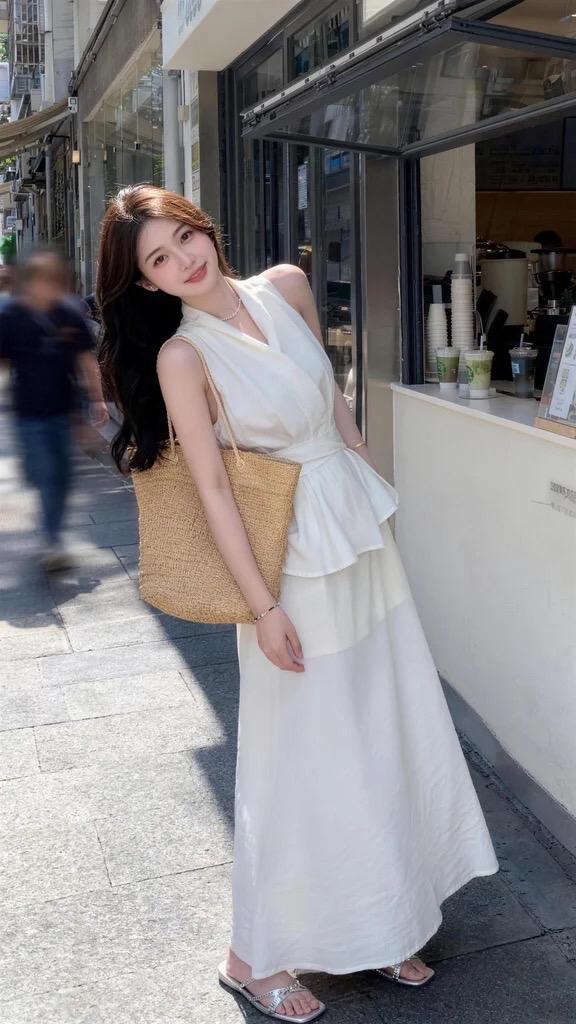 温柔白色连衣裙 法式白色吊带无袖连衣裙 夏日穿搭白色连衣裙 韩式小白裙 ins风