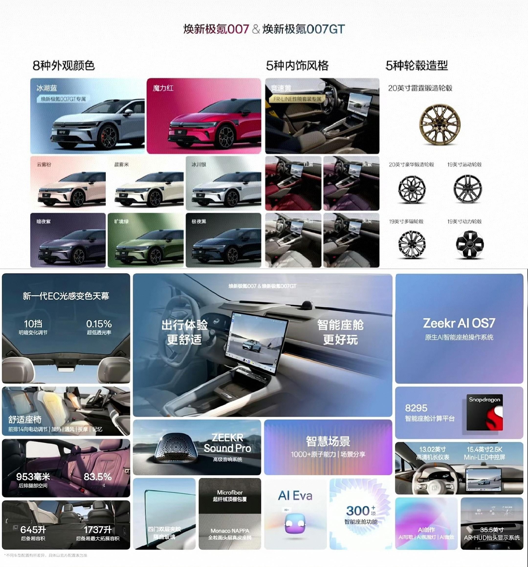焕新车型还有处惊艳创新,车型搭载的Eva智能机器人可玩性极高,进一步提升用车智能体验,让出行更具乐趣。无论是看重性价比、性能、安全,还是钟情猎装造型、多场景实用需求,焕新极氪007与007GT都能完美契合,凭借全面越级的产品力,成为20万级纯电车型的优选。作为全球猎装市场的领军者,极氪猎装家族累计销量已突破35万台,登顶全球猎装车累计销量榜首,全球每售出10台猎装车,就有7台来自极氪,用实打实的销量成绩印证品牌实力。