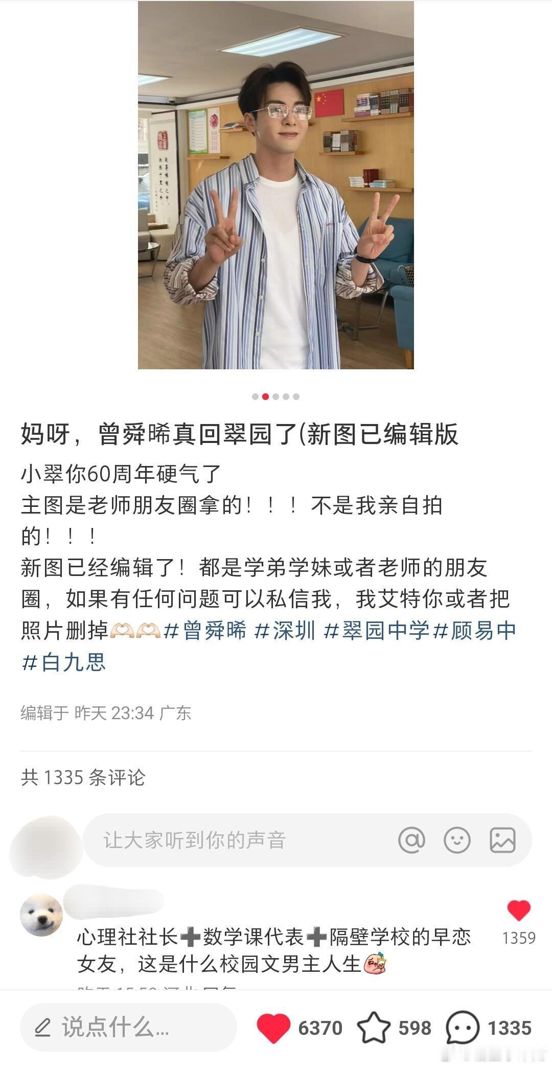 高中时期的曾威航已经是有名的校草了“当年的课代表,如今的大明星”“中午会站在漂流图书馆写作业,每周一主持是他,声音很好听,他是文科生,考试全年级前几”...会记一辈子吧