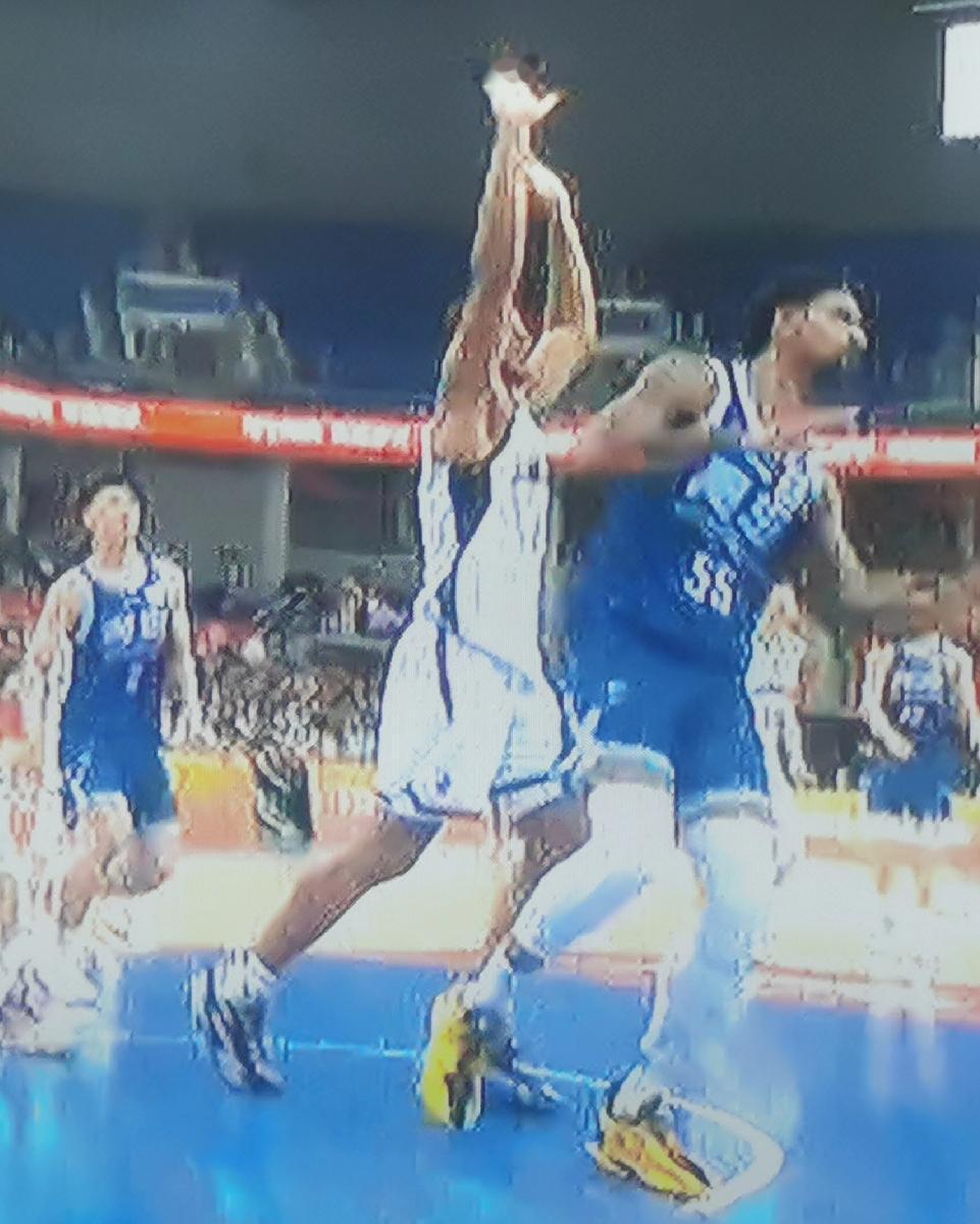 但尽管赔上了四次犯规,还是五次被突破防线,其中一次被米奇摆脱后暴扣,让自己惊骇不已。