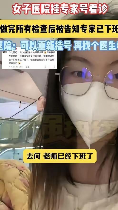 “终于有人看不惯了!” 四川成都,女生花 90 多挂了个专家号,专家上来就开了一系列检查,让女子先去做。可是女子做完检查找专家,却被告知专家已经下班了!女子问护士怎么办?护士居然让女子再花 18 块钱给普通医生看?女生:“那我挂专家号图什么?”现在去医院挂专家号,真的越来越让人摸不着头脑了,本以为花多点钱能少走点弯路,结果反而更折腾。