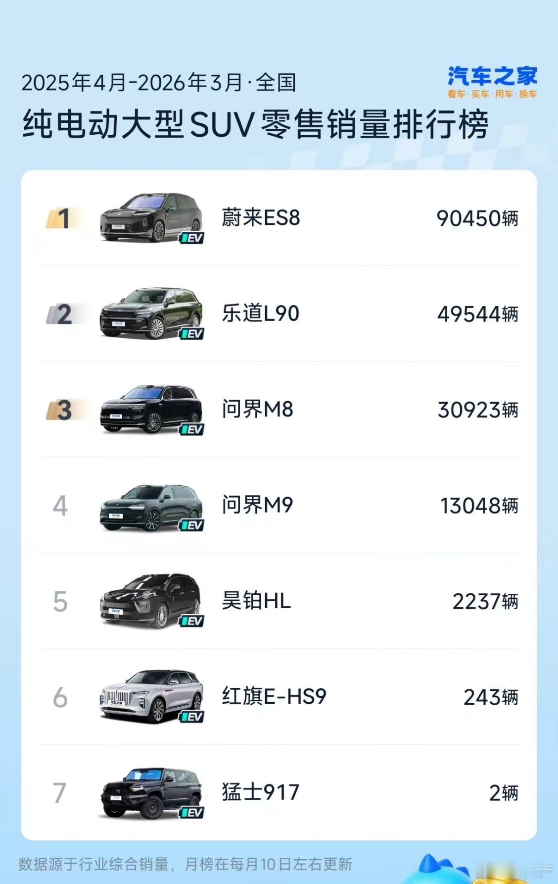 最近要去看L80和L90了,翻了些数据参考,几个榜单都排到挺前的,知道买得好没想到这么好,对于一台纯电大六座能一直保持这样的销量挺难得的。