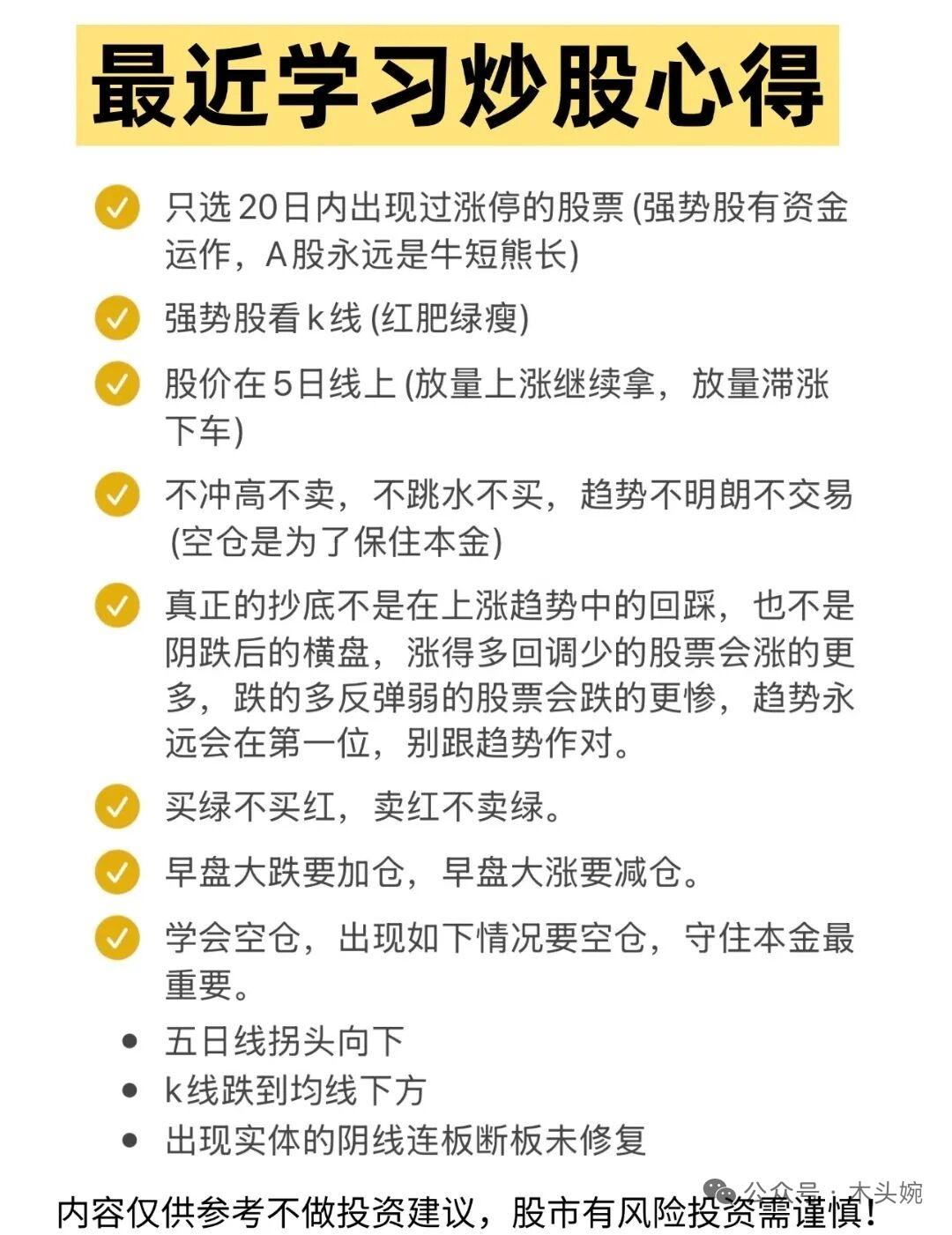 再配上这套实战交易心得,从强势股筛选、K线均线判断到仓位管理,把技术信号落地成可执行的交易纪律。新手收藏这组图,从看懂指标到用好指标,少走弯路,守住本金,顺势而为!