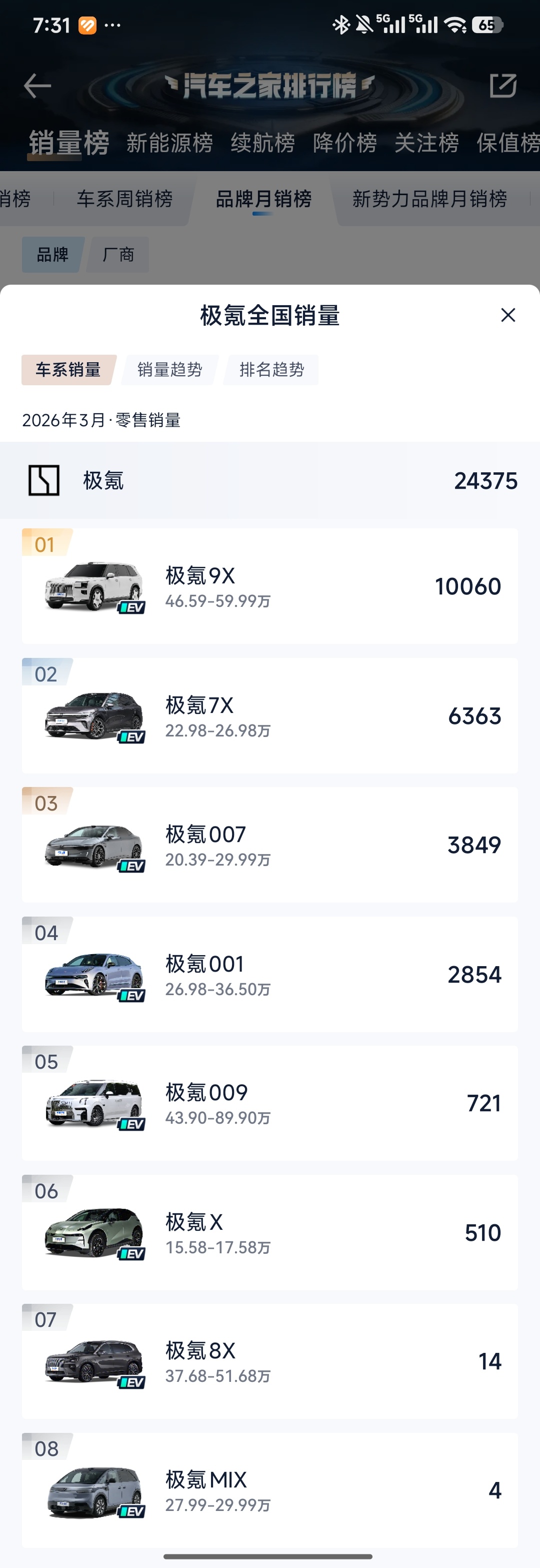 蔚小理谁难,现在回头看,当时小鹏放下身段推出廉价摸哪,拯救了小鹏,一时风头无两,但现在看,还是那句话,价格对品牌伤害是最大的,蔚来和想子在最困难的时候也一直没有价格和产品妥协,如今消费群体形象就立在那里了,真是,这该死的轮回,如今gx想向上挽回势头,但李维斯和es9都不是善茬儿咯,况且,已经有那么多9系提前一年多堵在那里了诶,AITO咋回调这么狠呢?我大极氪9x还是按月过万猛干啊,帅帅的老舅燃油领克09,在川子夜壶猛干朗子的3月还是能过千台,阔以阔以