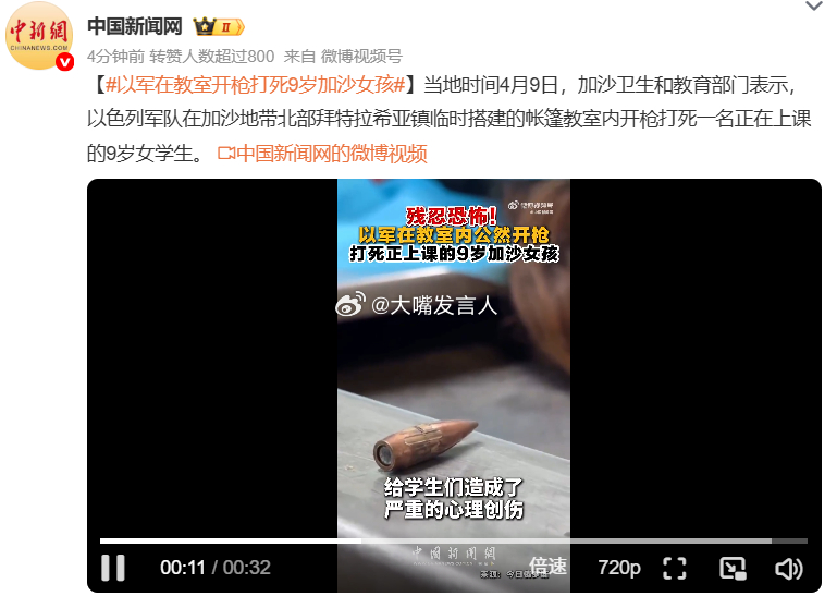 以军在教室开枪打死9岁加沙女孩 我一直觉得,可以参考现实、回忆历史1. 如果你不知道当年侵华日军的野蛮凶残程度,可以参考现在以军在加沙的屠杀;2. 如果你不知道百十年前伪满锅上层人士对日本侵略者的奴颜屈膝、跪服,可以参考现在湾湾绿营如何对待美日,绿营吃着美国瘦肉精莱猪肉、买着质次价高的武器、还要把岛内精华企业台积电开心地送到美国;湾湾渔民被日本渔政船只追赶时、绿营只会骂湾湾自己的渔民就这,蓝营还对湾湾的制度有优越感以军当学生面打死加沙小女孩,热点观点 ,黎以同意在美讨论停火,各方同意以伊方十点方案为谈判基础