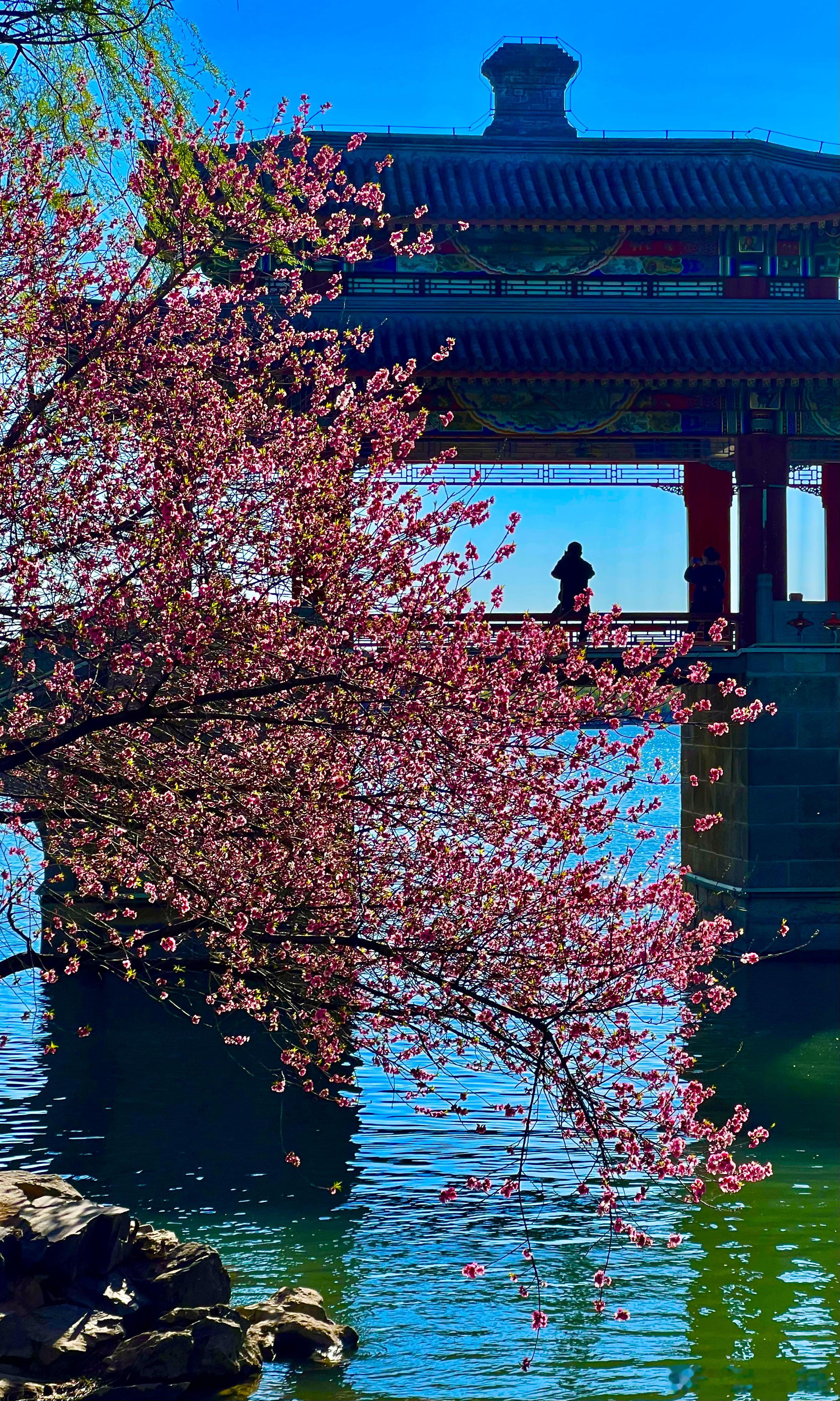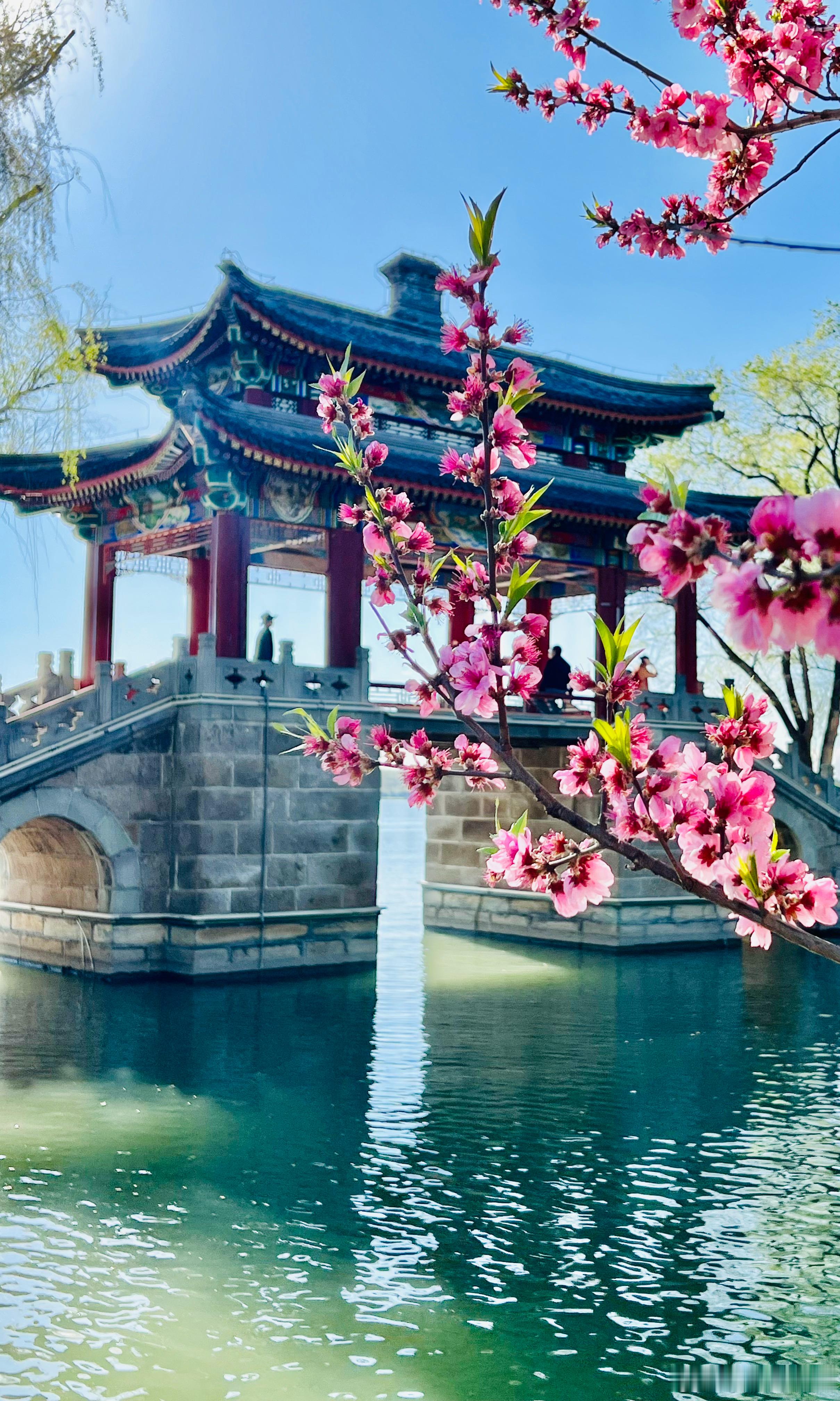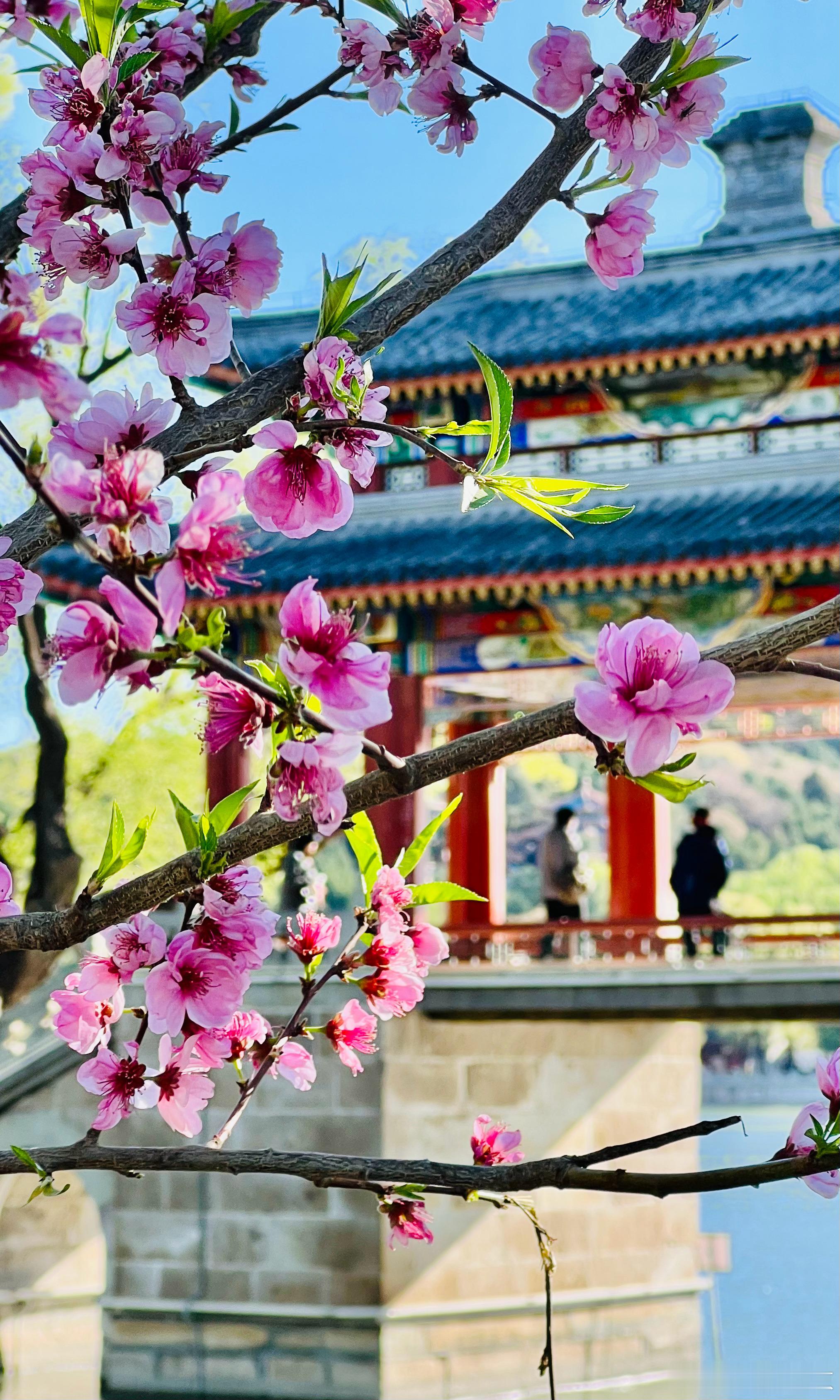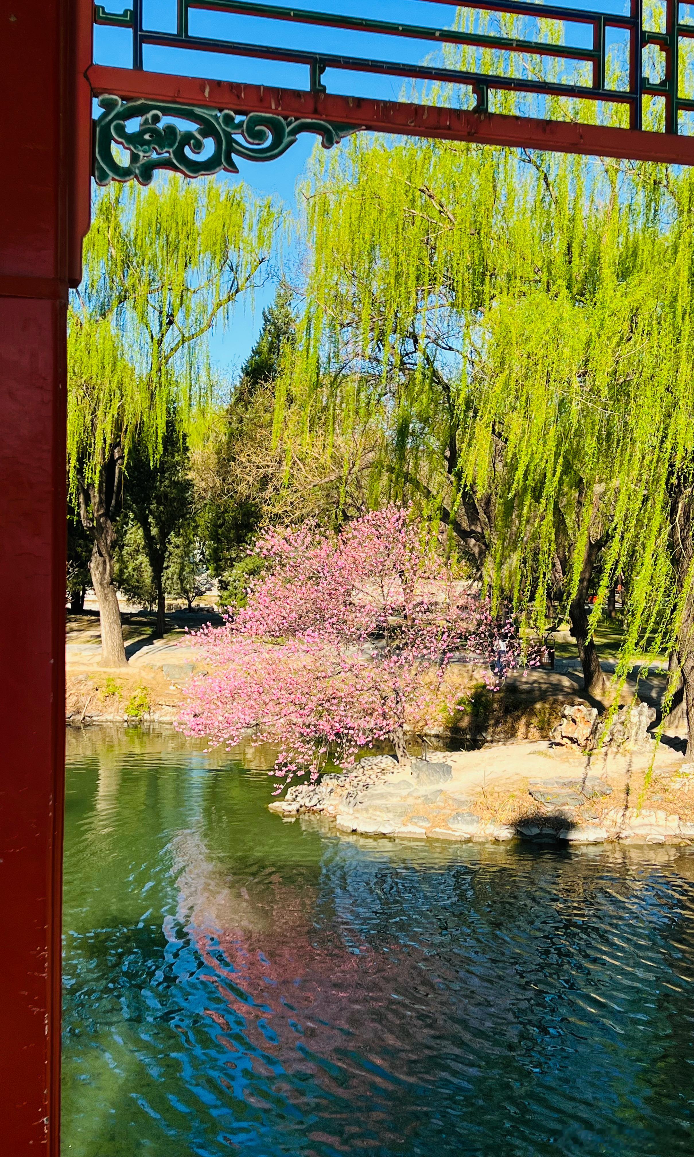 四月,真是一年中最美的时节。公园里,桃花、杏花、樱花竞相绽放,红的像火,粉的像