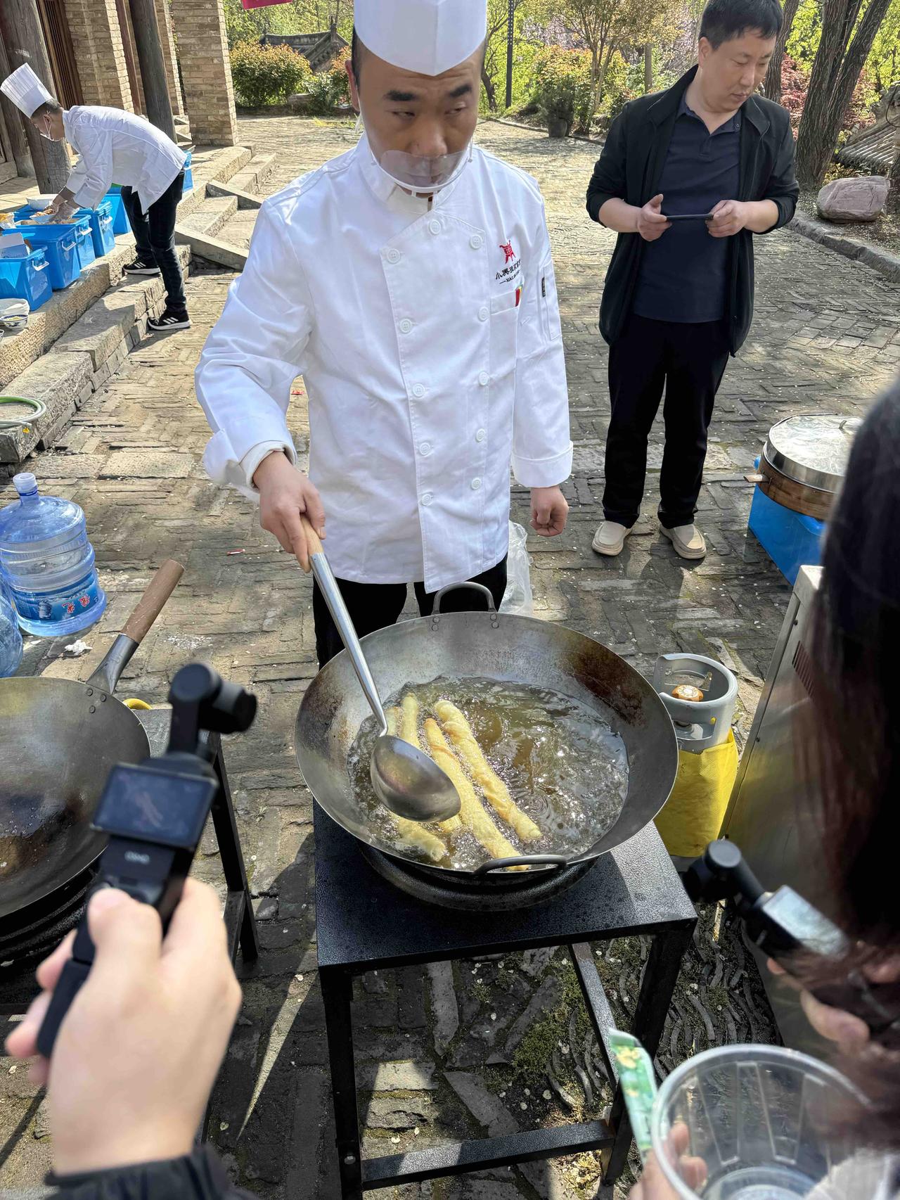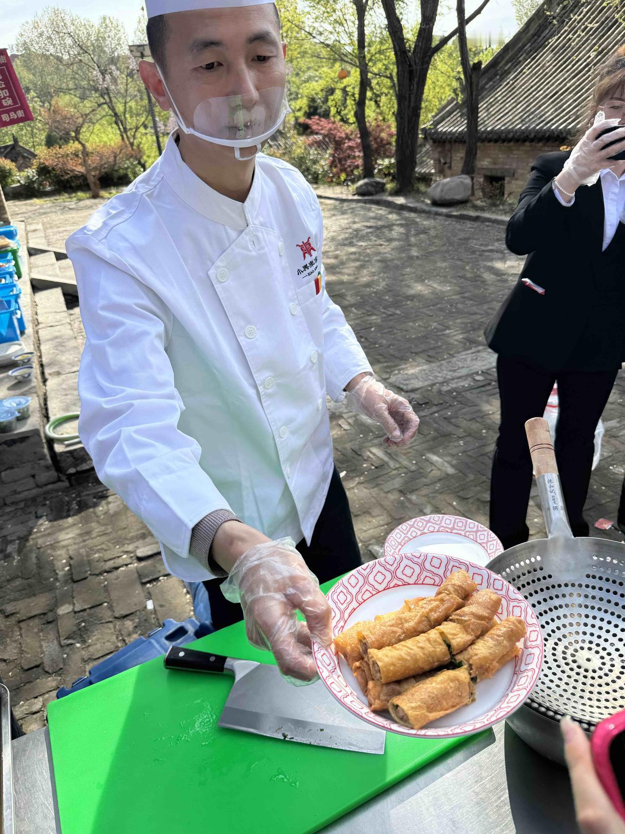 肉春卷。提到春卷,大都是甜的。济源的肉春卷,是肉的,咸的,鲜的。像饺子馅,但肉的颗粒更大;加入韭菜,伴着少许的肥肉,鲜红,点白,翠绿。搅拌好,放到一个塑料袋里,把塑料袋做成圆锥状,握着袋子,轻轻挤压,肉馅从锥尖缓缓流出,顺着摊开的春卷皮儿,均匀挤出长条。两头封边,轻轻卷起,再到最后,抹点面糊,将它粘合,长长的春卷胚子就做好了。一条一条的排在旁边,等那边的油锅起热。火候一到,春卷胚子便一条条跳到油锅,油面碰撞,个个翻滚,冒着泡,嗞嗞响,在厨师的笊篱里,腾空入油,来回翻滚,渐渐的,春卷变黄,变焦,看上去像北方的独根油条。再过一会儿,捞出,控油,切段,装盘。厨师递给围观的食客。夹起来,切口处,肉粒,韭菜,还鲜红的嫩,青翠的绿。放到嘴里,轻轻一咬,外皮的焦,内里的鲜,刚出油锅的香,春天都在嘴里。美食,始终是人类刻在骨子里的向往。人们也把这骨子里的渴望,细化到各色的绝技里。触发着味蕾,也在触动着心灵。是的,美食,承载的是人心,还有过去、现在和未来。