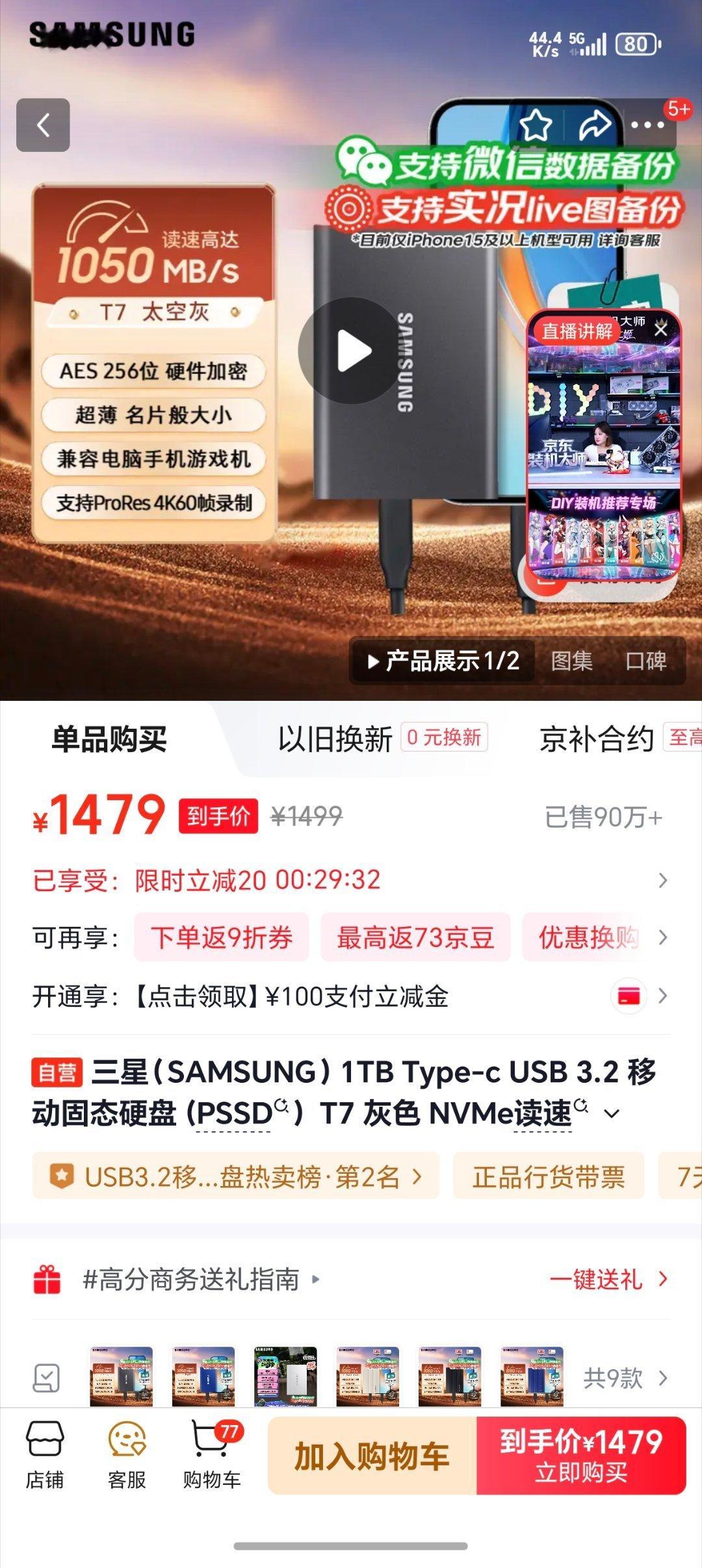 内存条价格过山车四年前买的这个三星移动固态硬盘,当时优惠完是800多,刚刚看了一