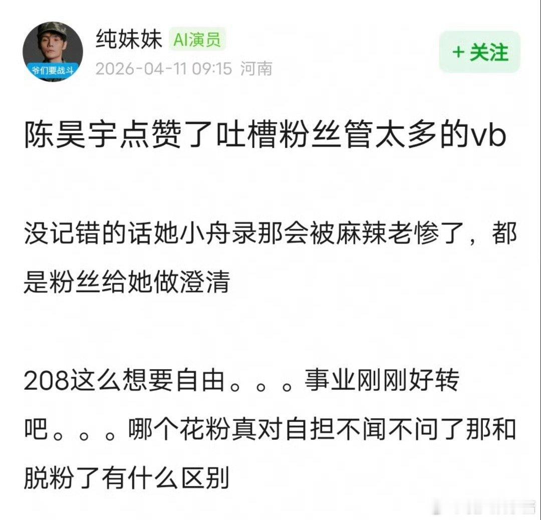 陈昊宇点赞了说粉丝管太多的wb,这合适吗