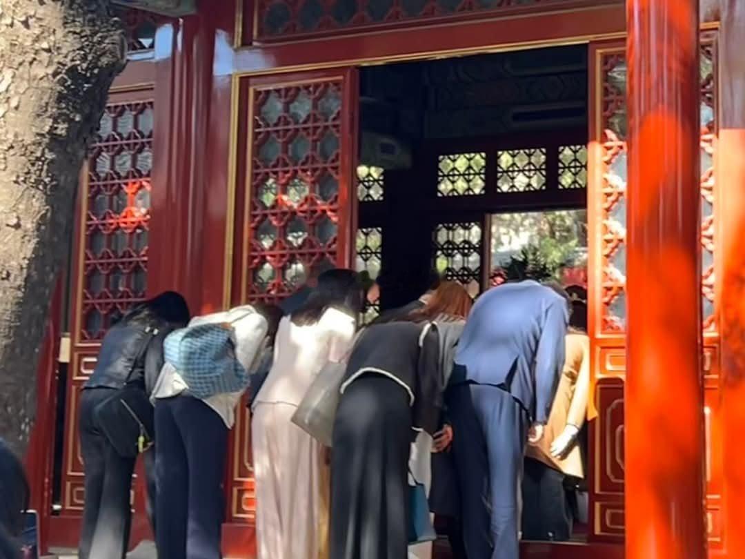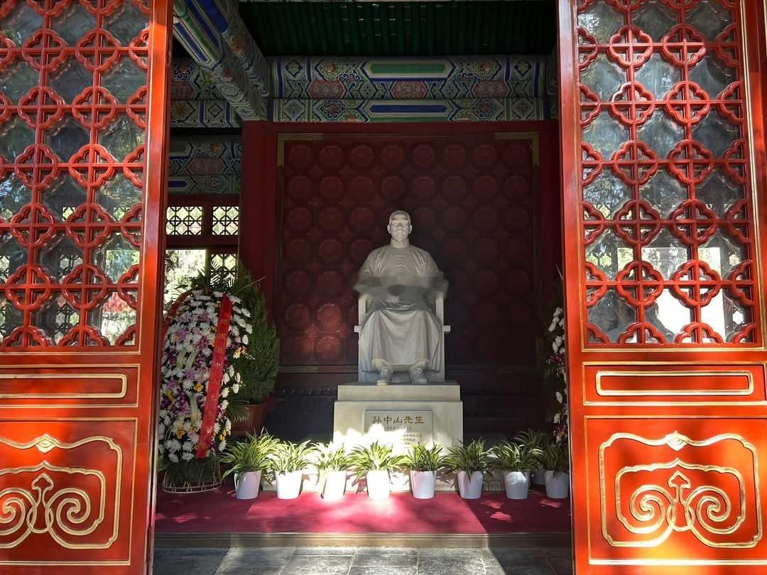 11日上午,碧云寺。碧云寺内有中山先生纪念堂、中山先生衣冠冢。郑丽文率团开始大陆