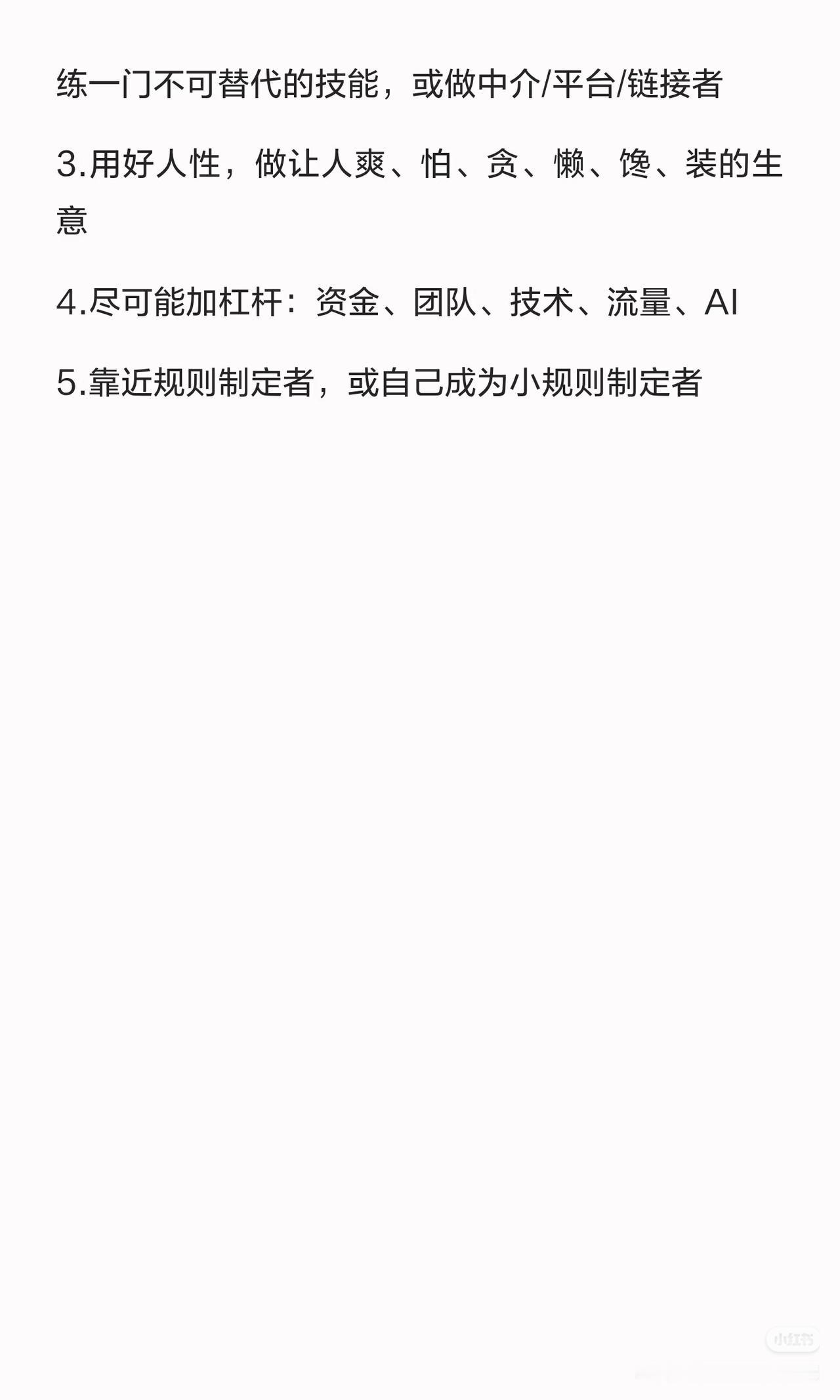 ✅ 5. 顺势加杠杆:用AI、流量放大自己的技能,不用蛮力,用杠杆把小努力放大成大回报。