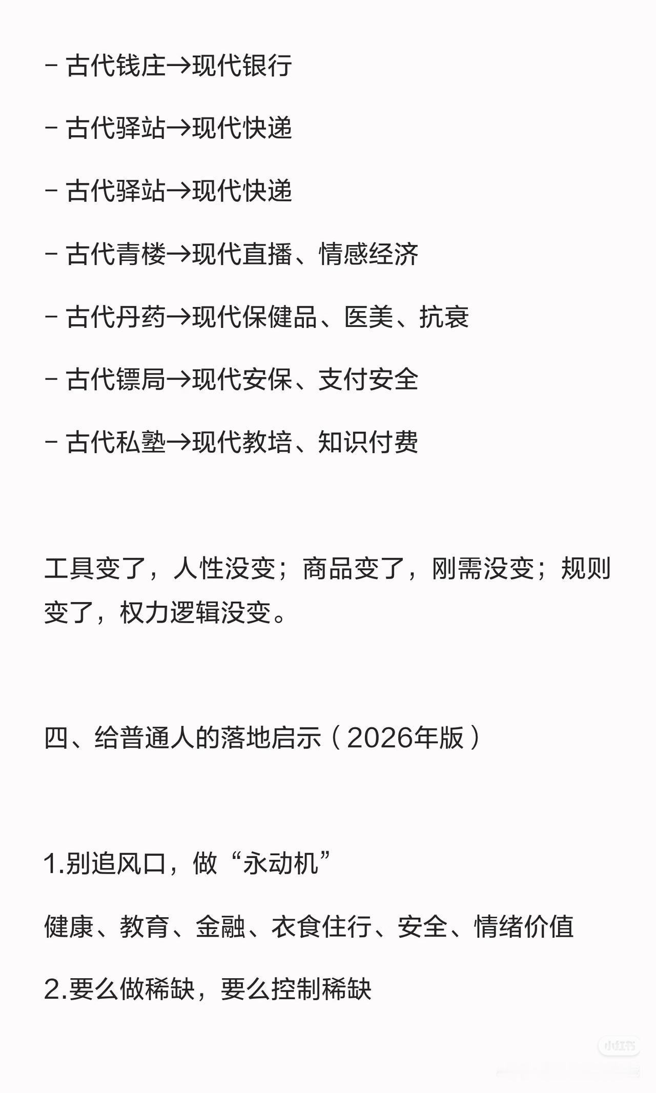 ✅ 1. 别追风口,做“永动机”:扎根健康、教育、衣食住行这些永恒刚需,不追短期热点,稳扎稳打才是普通人的出路;