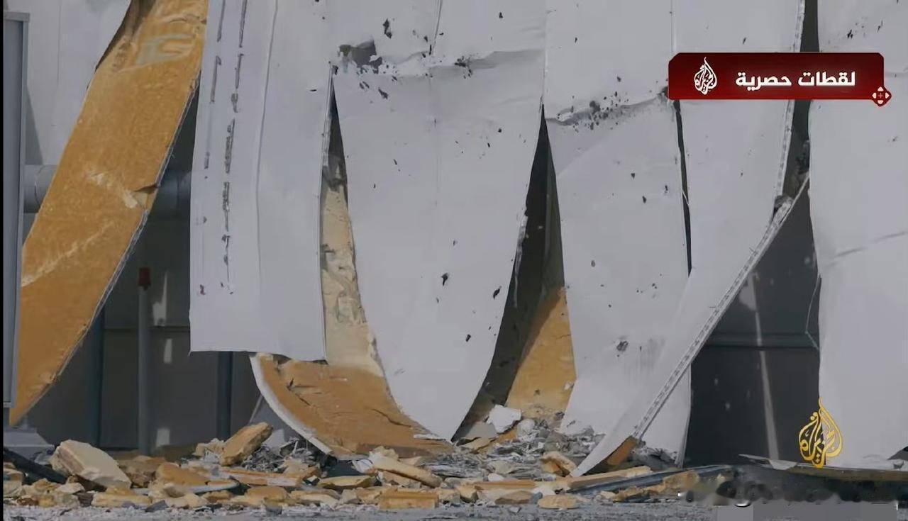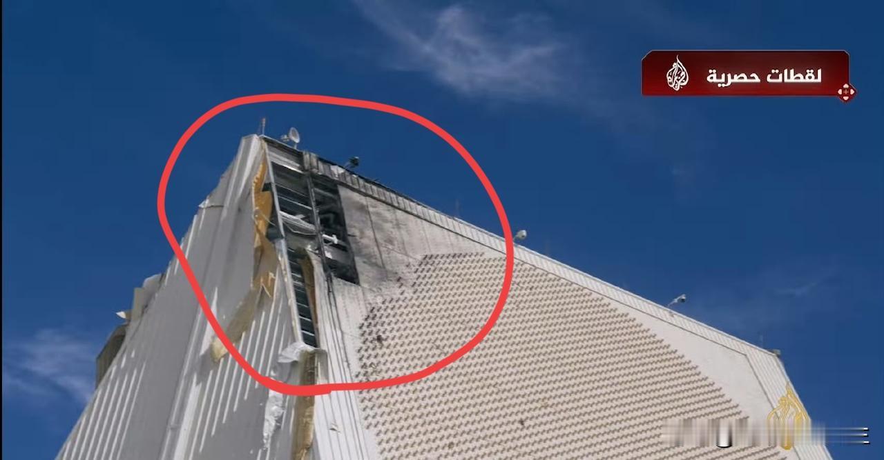 仔细看卡塔尔基地老美引以为傲,价值10几亿美刀的大型警戒探测雷达,这玩意儿虽说还没有变为一堆废墟,但是这个雷达下面的控制机房和烟囱上面的TR单元组件已经被大火彻底烧成废渣了。