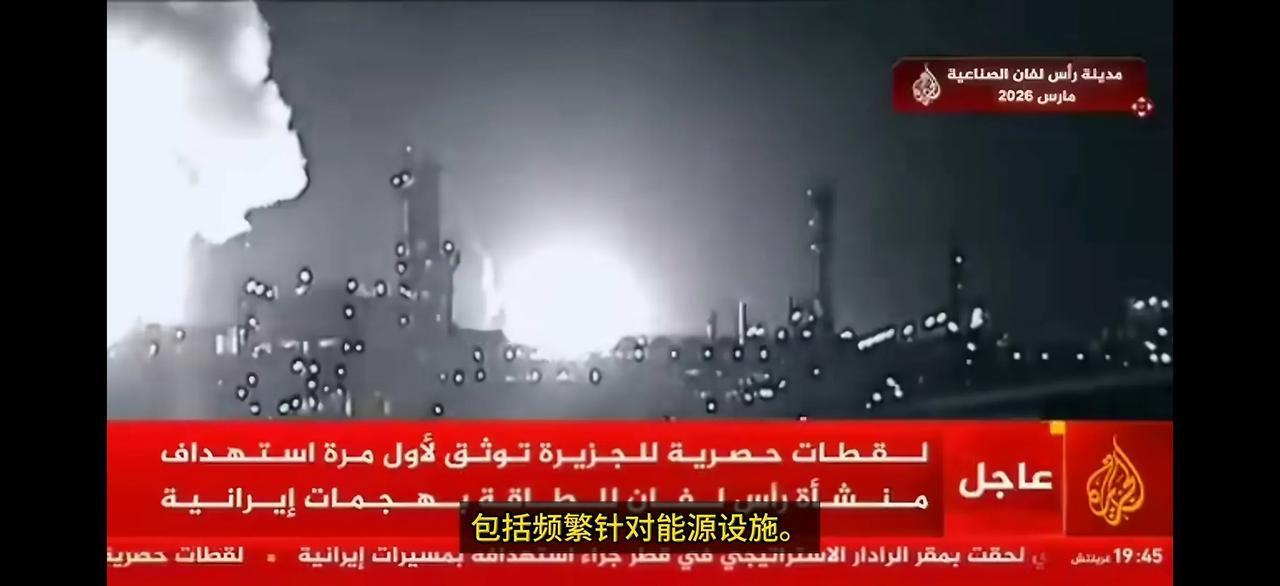 卡塔尔半岛电视台首次公布了伊朗导弹和无人机联合袭击卡塔尔天然气枢纽拉斯拉凡工业城的画面,打得卡塔尔差点自闭。