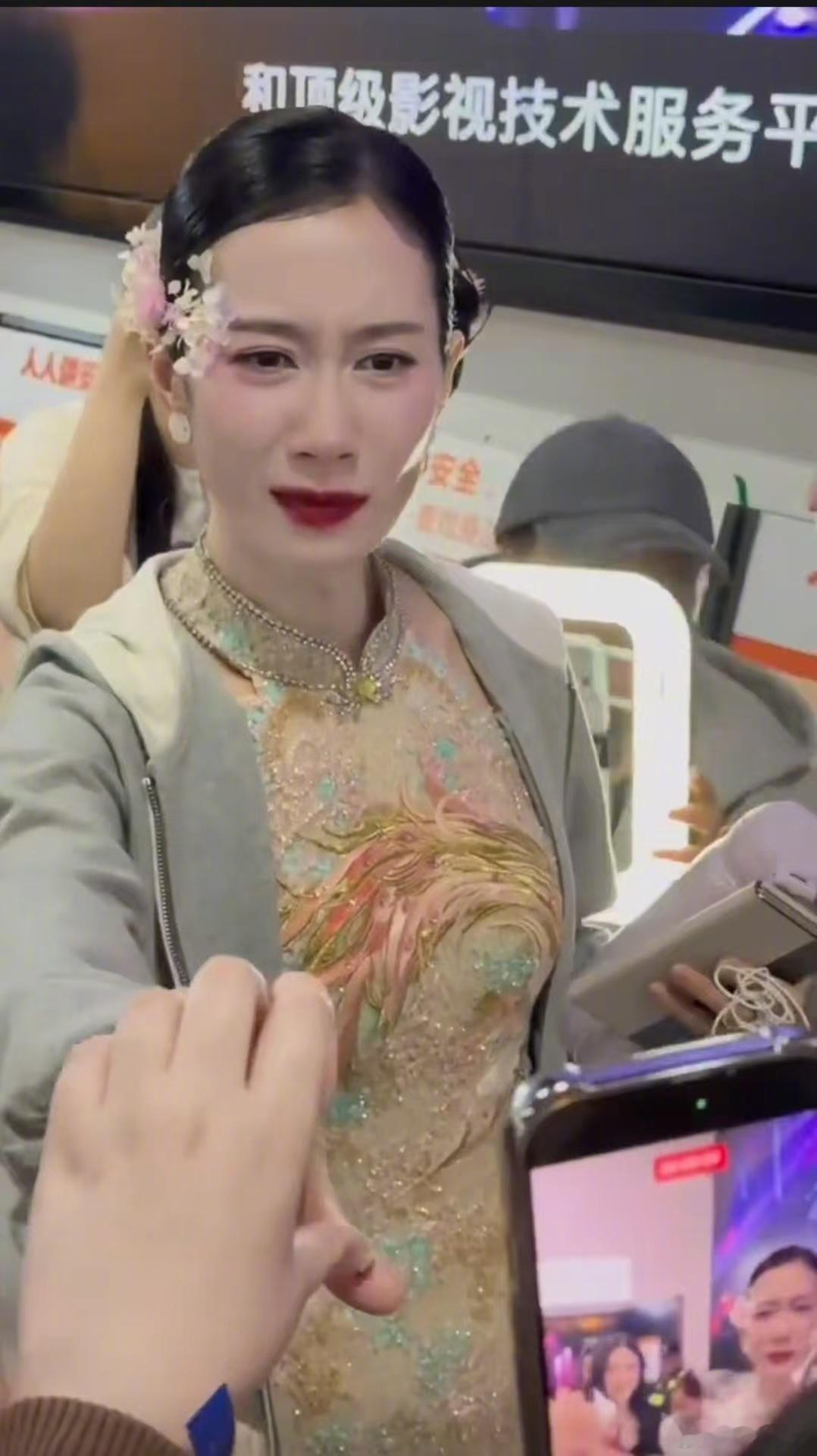 温峥嵘下班也一直在哭着饭撒 姐姐一公结束离场时一边落泪一边坚持与粉丝互动,大家也