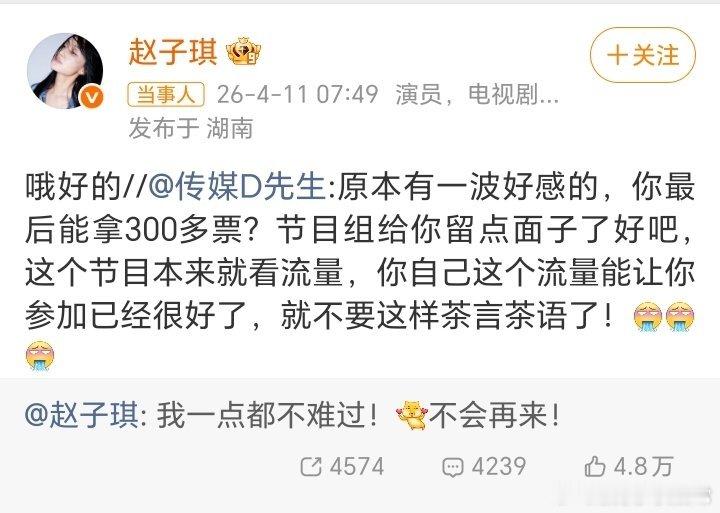 赵子琪,太敢说了!4月11日凌晨05:21,刚被浪姐淘汰,赵子琪无法入睡,发