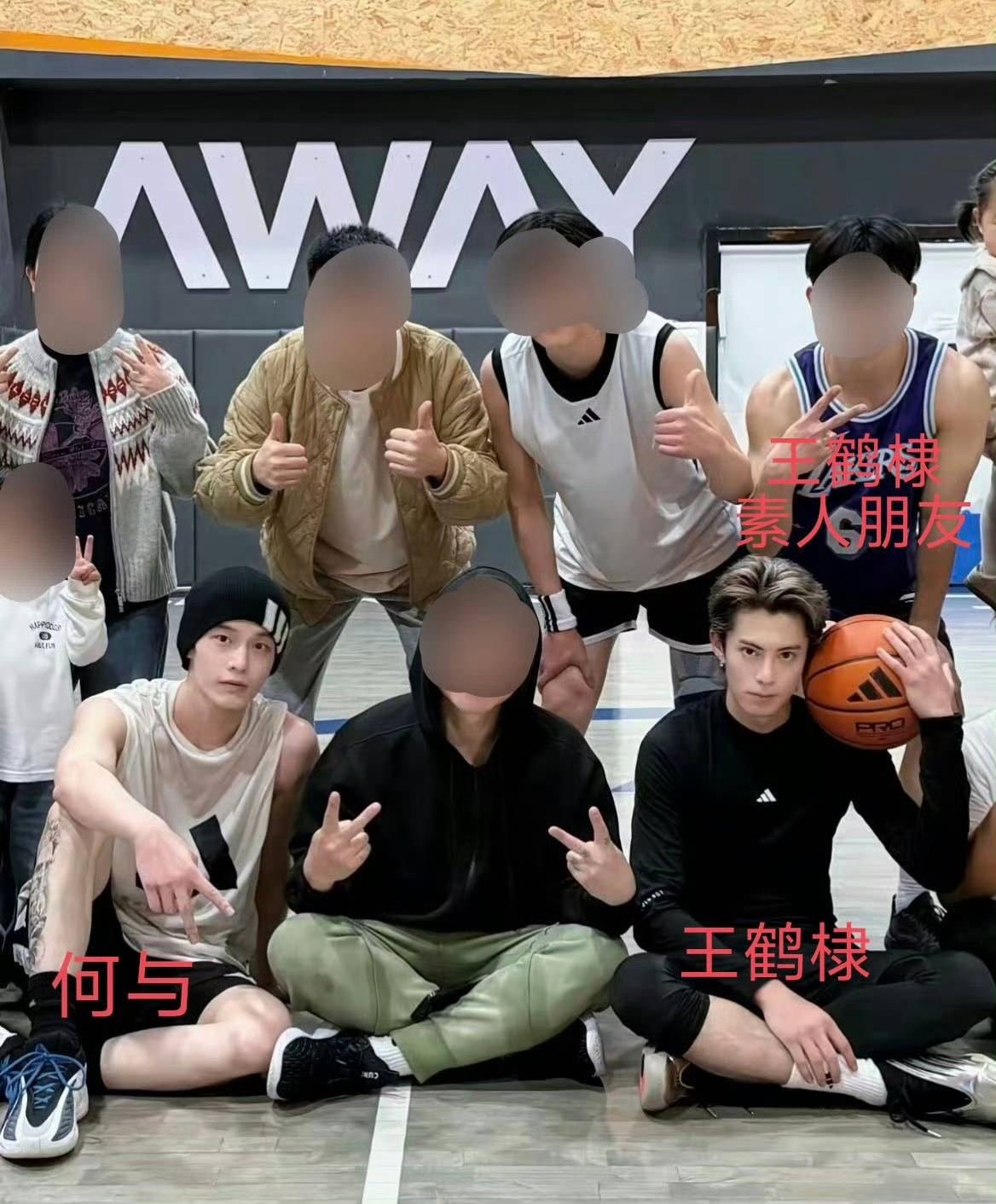 我终于看懂了这个🍉。1、一博主发与王鹤棣、何与一起打球的合照。(图1)2、评论