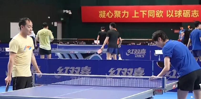 曼昱昨天在训练馆被拍到与任浩教练一起训练发球,还特别训练了高抛发球。