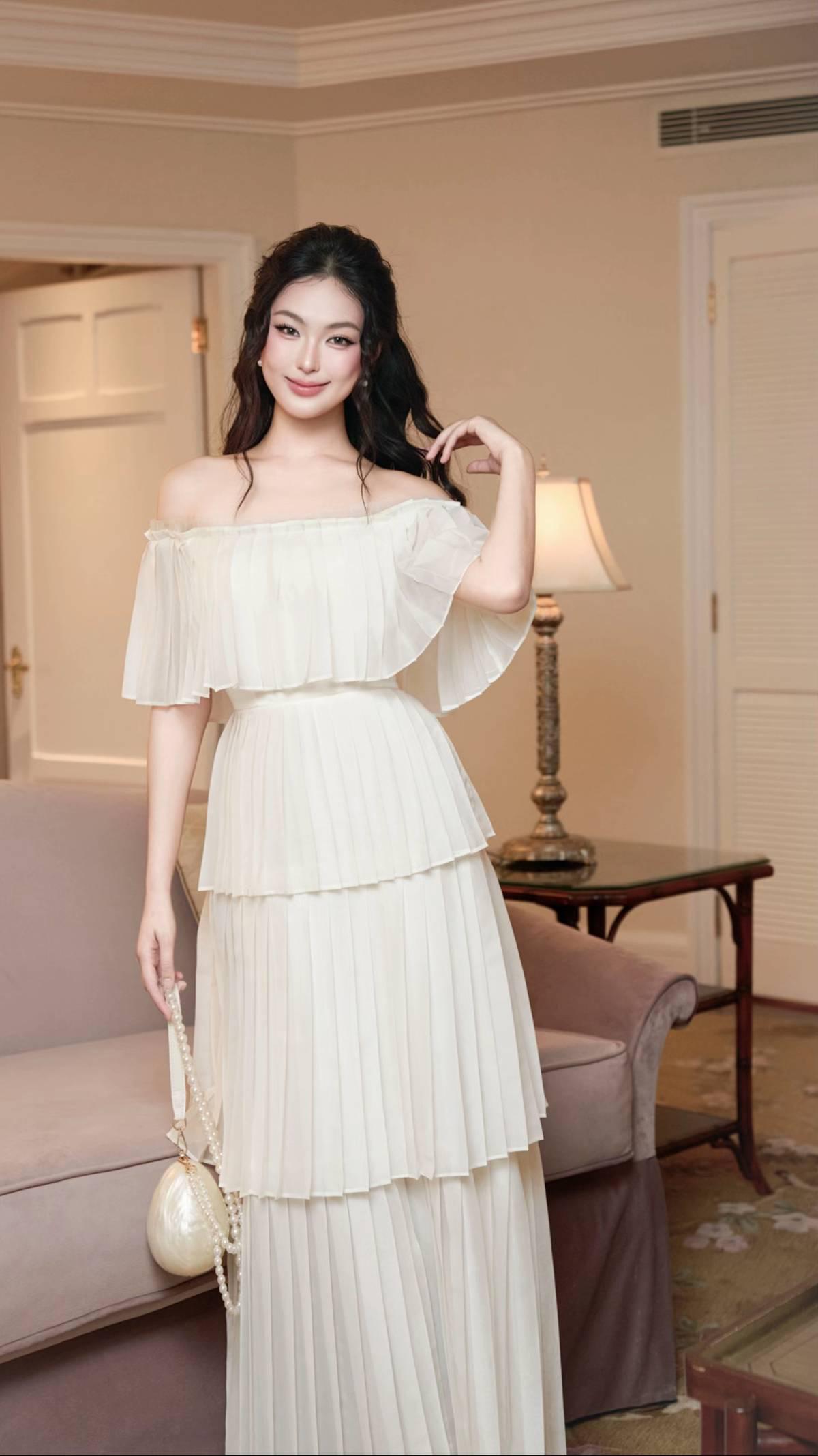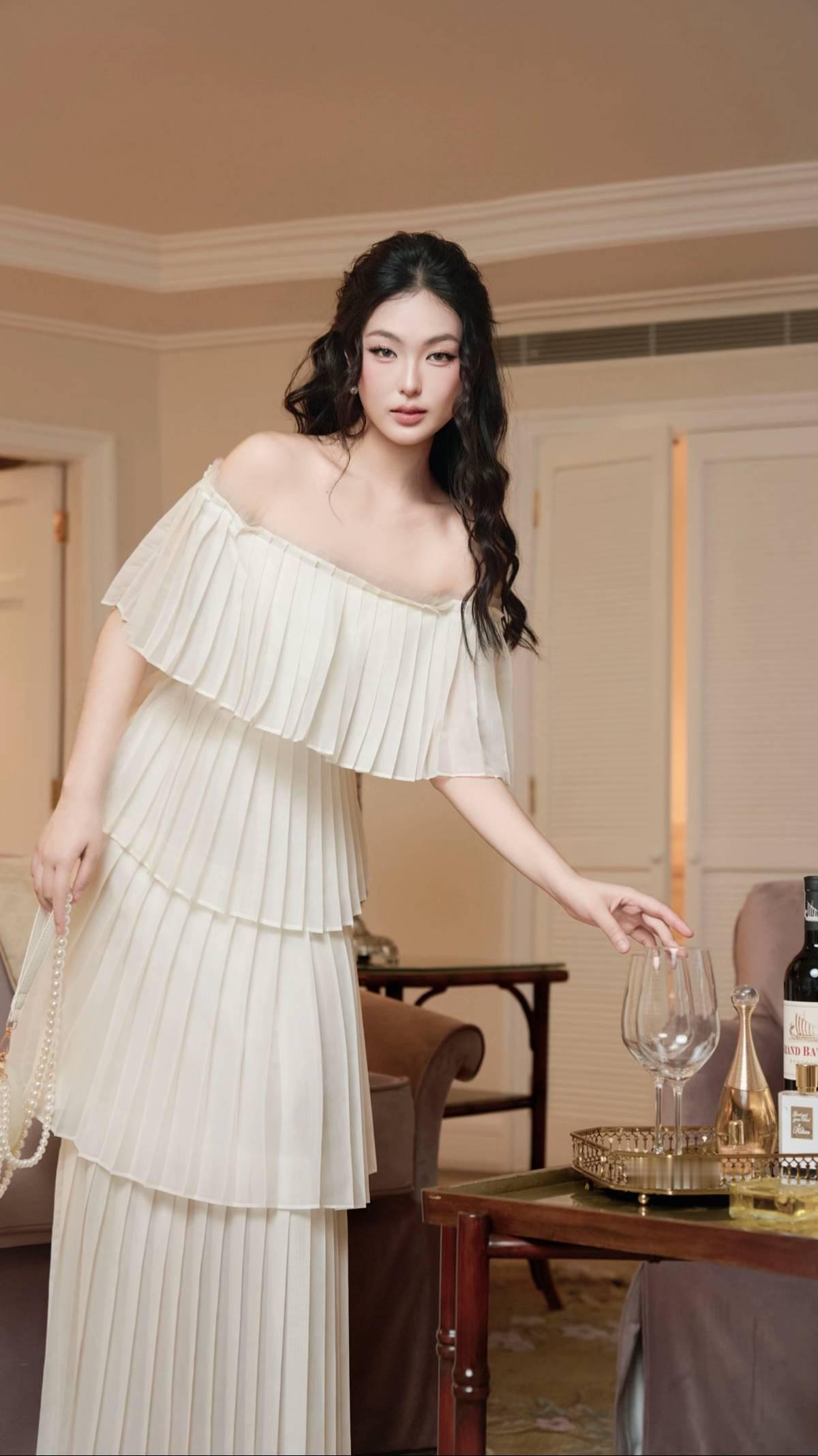 法式穿搭 一字肩连衣裙 百褶裙穿搭 富家千金穿搭 温柔风穿搭 礼服裙穿搭