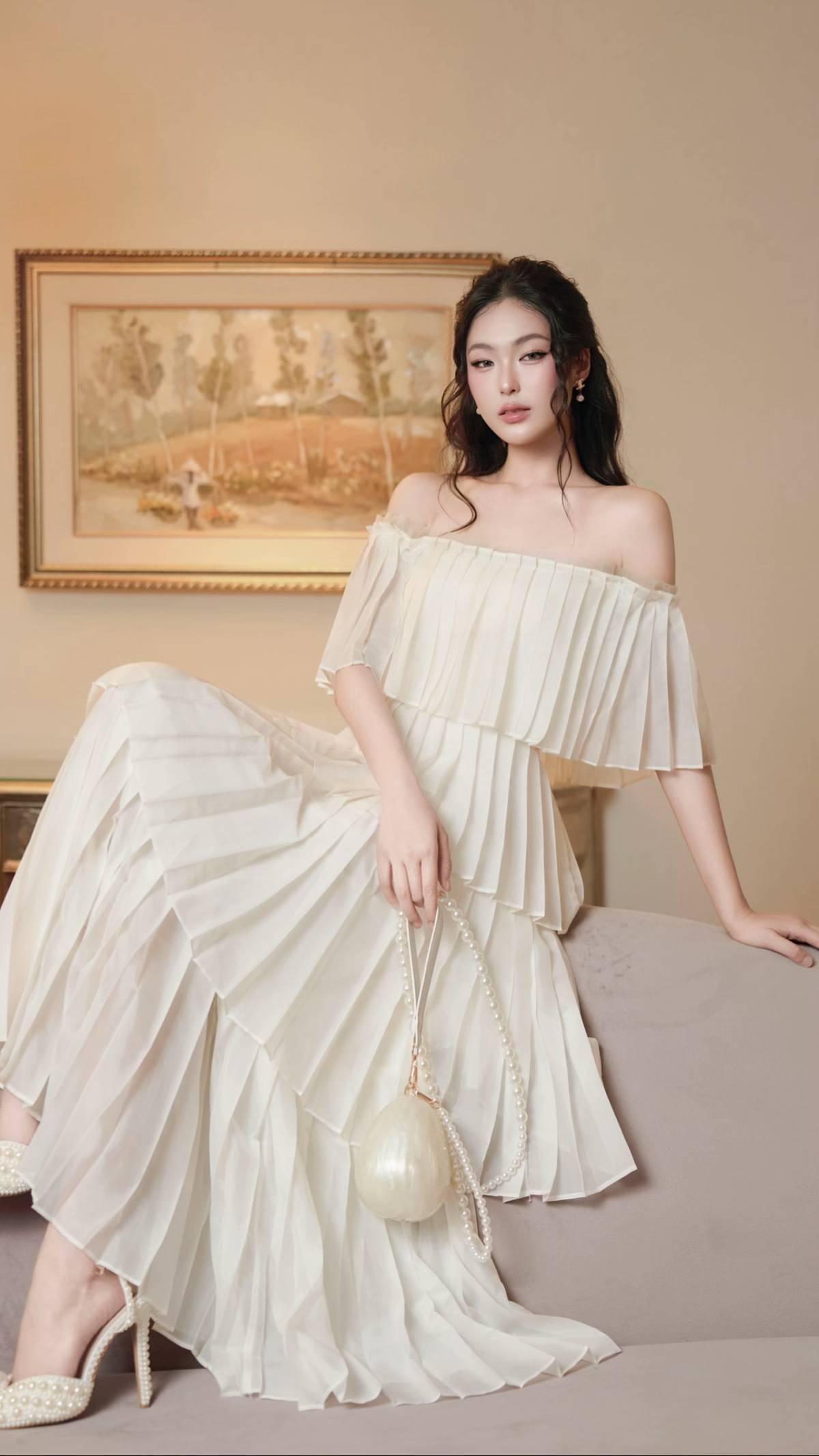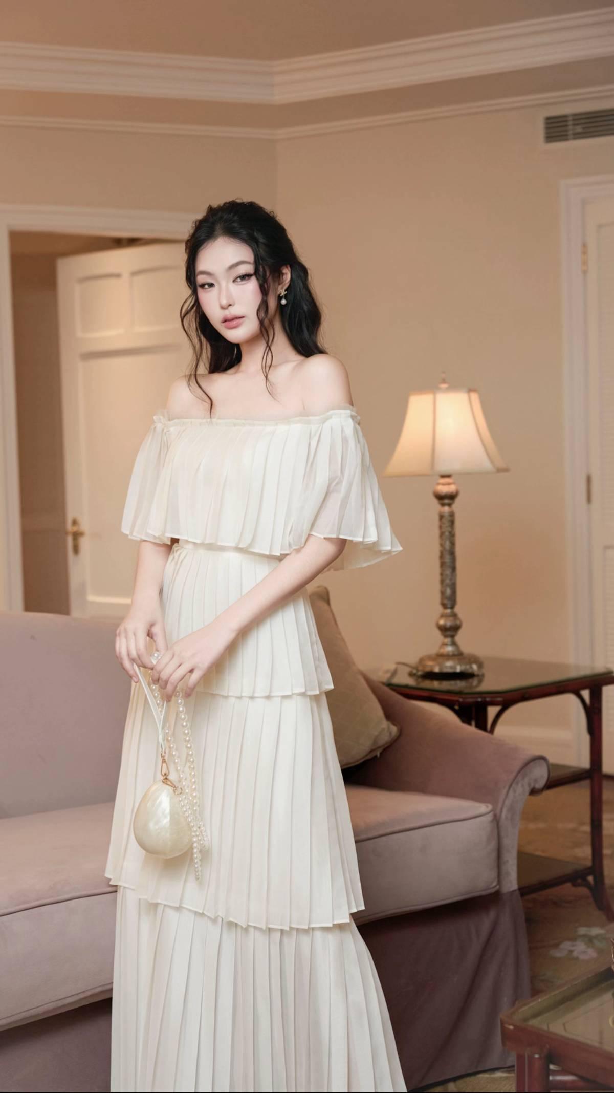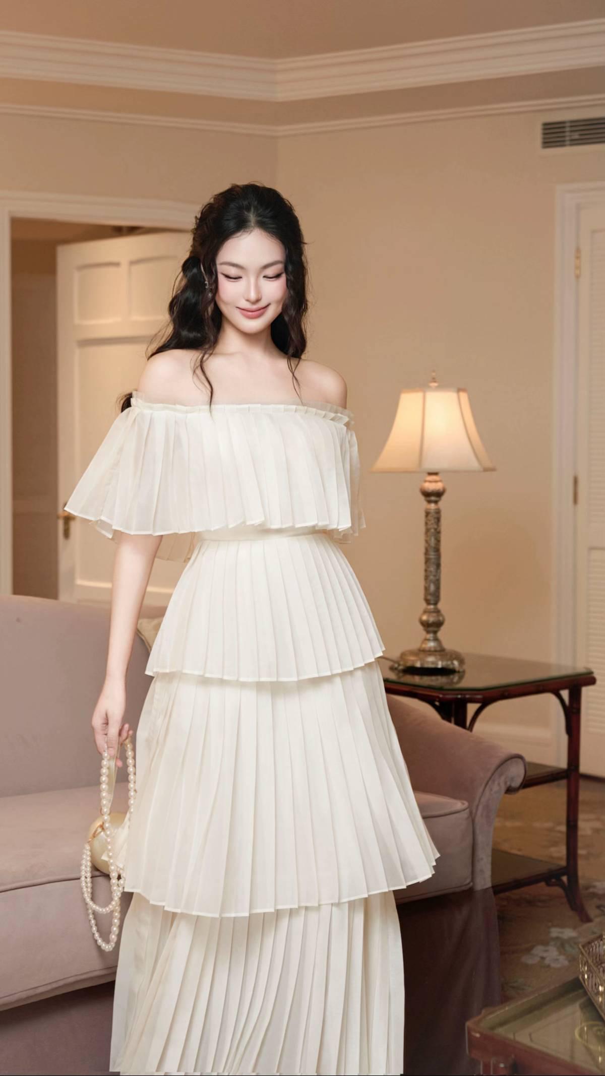 ✨把法式优雅焊在身上的一字肩百褶裙