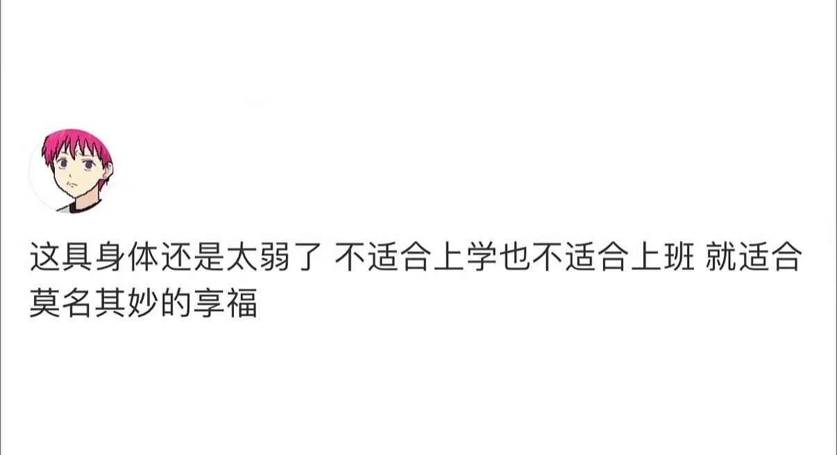 只想享福这具身体还是太弱了,不适合上学也不适合上班,就适合莫名其妙的享福。