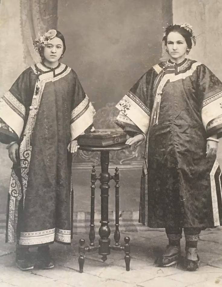 这照片第一次见,没查到出处,也不知道在哪拍的,话说他们穿这衣服真的没啥违和感,反