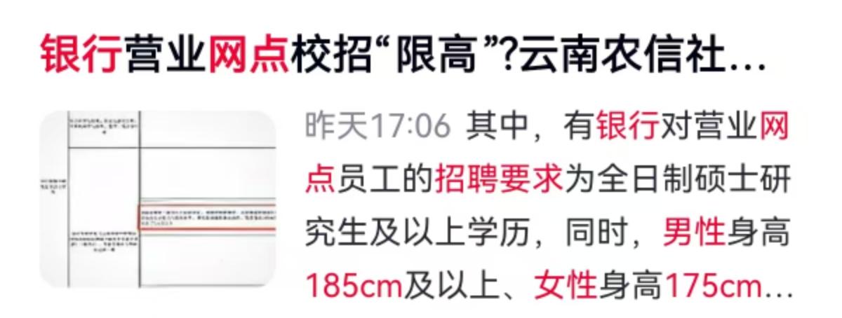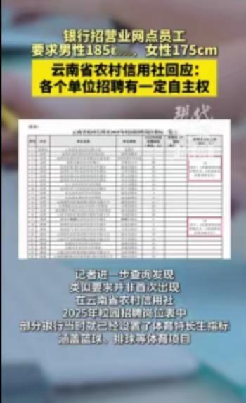 银行柜台前递存折的业务员,转眼间可能就是排球场上跃起扣杀的专业选手。近日云南省农村信用社校园招聘的一纸公告,直接把求职圈看呆了。全日制硕士研究生及以上学历,男性身高185厘米及以上、女性身高175厘米及以上,不仅要擅长体育项目,还得持有国家二级及以上运动员证书,甚至必须通过专门的体能测试。这串硬核条件单拎出来,怎么看都像是职业体育俱乐部的选材标准,偏偏它挂在的是银行营业网点员工的招聘名下。