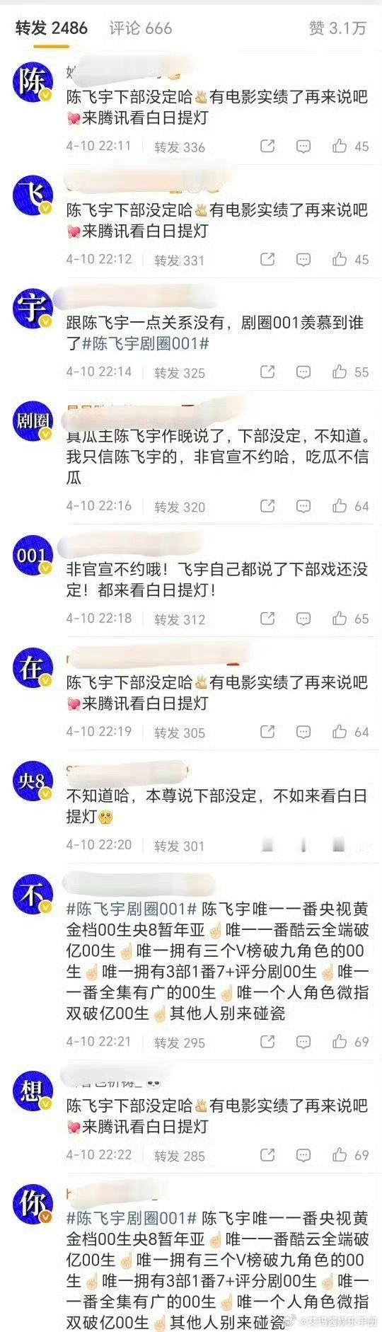 王星越 陈飞宇两家粉丝排字👇🏻