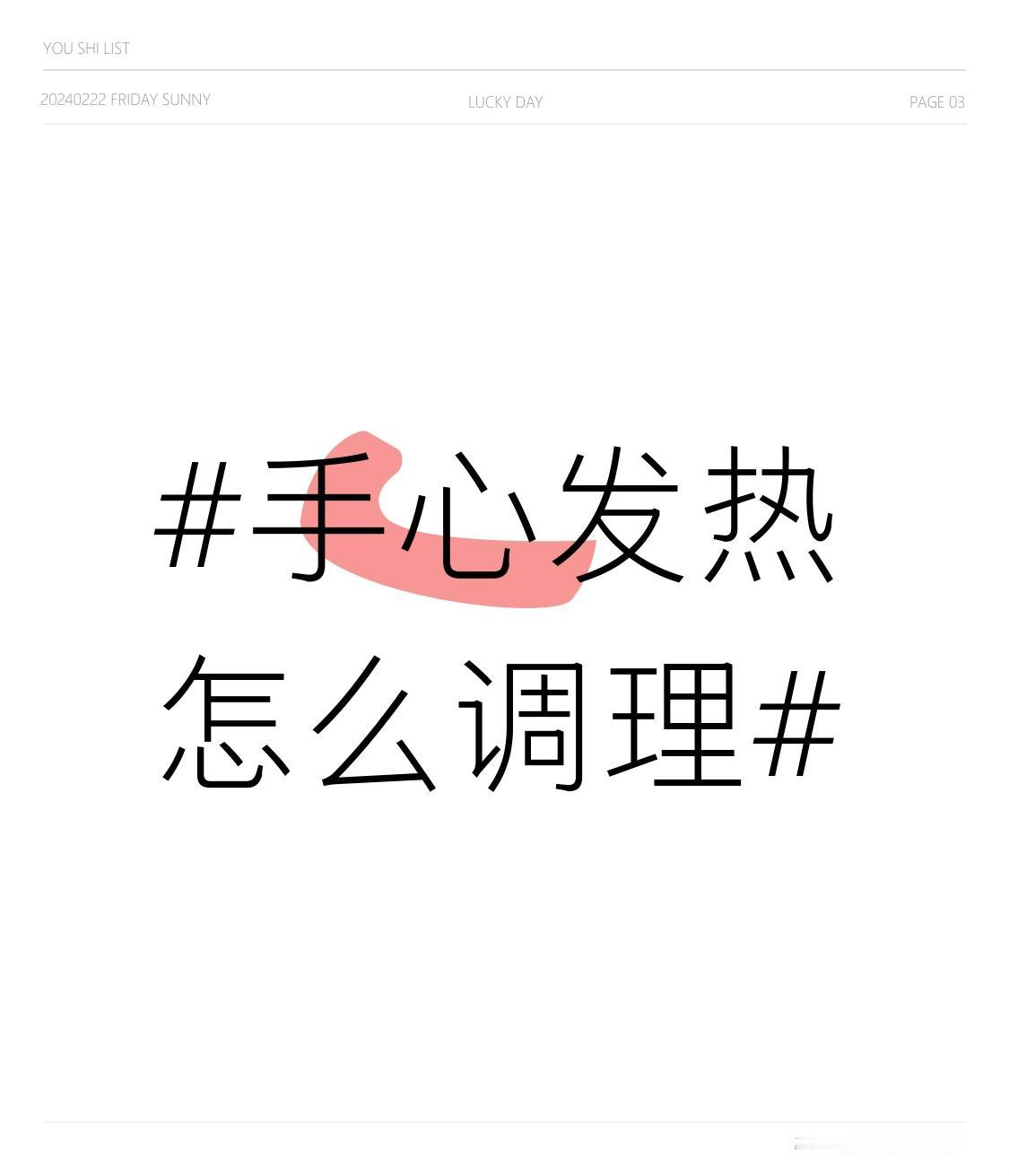 手心发热可通过多种方式调理。从生活习惯来说,要规律作息,每天保证7 - 8小时睡眠,避免熬夜,午后还能小憩30分钟。饮食上,少吃辛辣刺激和油腻食物,多吃银耳、百合、梨等滋阴降火的食物,每天喝1500 - 2000毫升水。