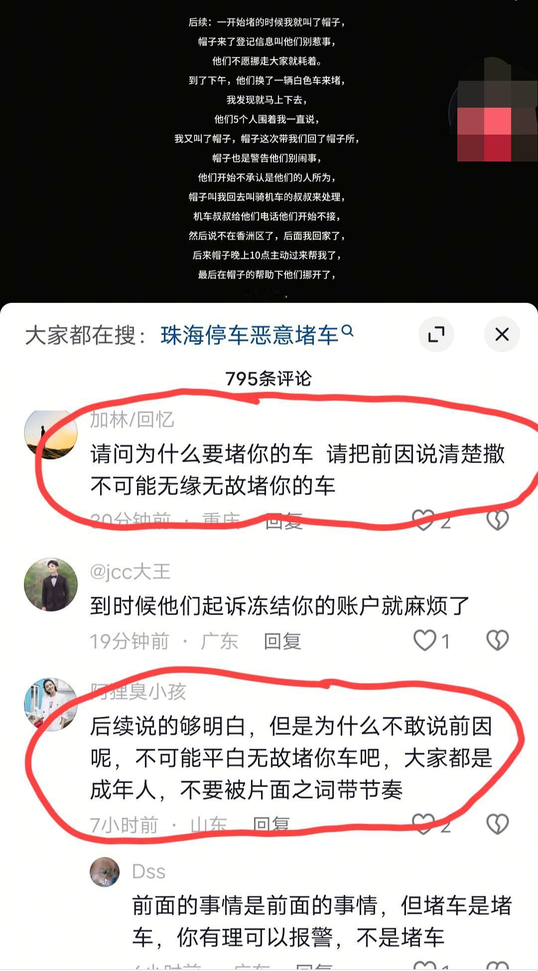 评论区大部分网友还是比较客观的看待这个事情,大家都提了同一个疑问:人家不会无缘无故堵你的车吧?总有个理由有一个说辞吧?