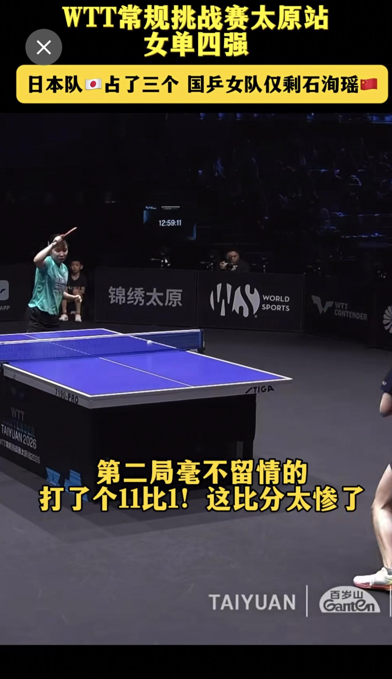 女单四强日本队占了三个 国乒女队仅剩石洵瑶,下一轮对阵,18:10 T1 大藤沙