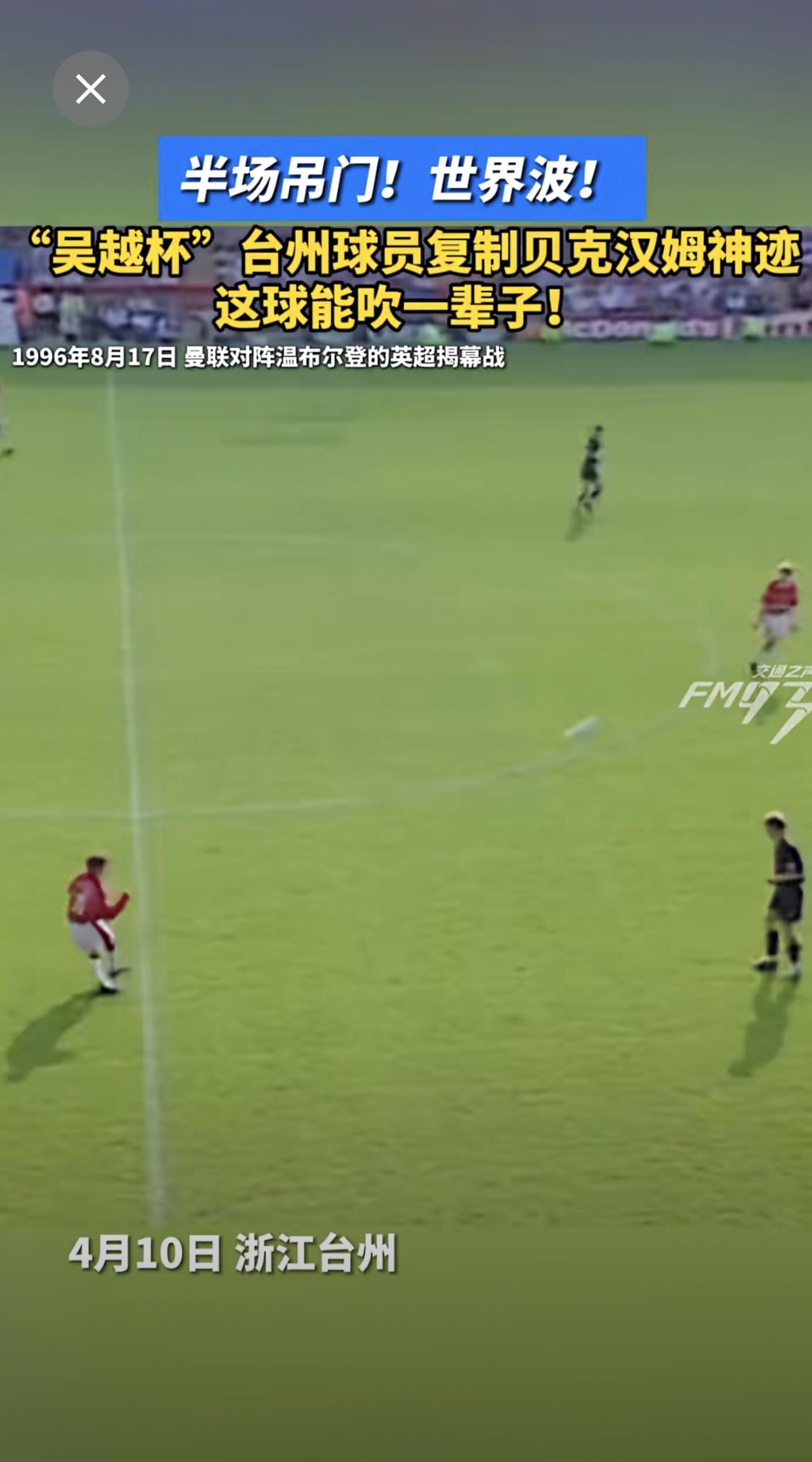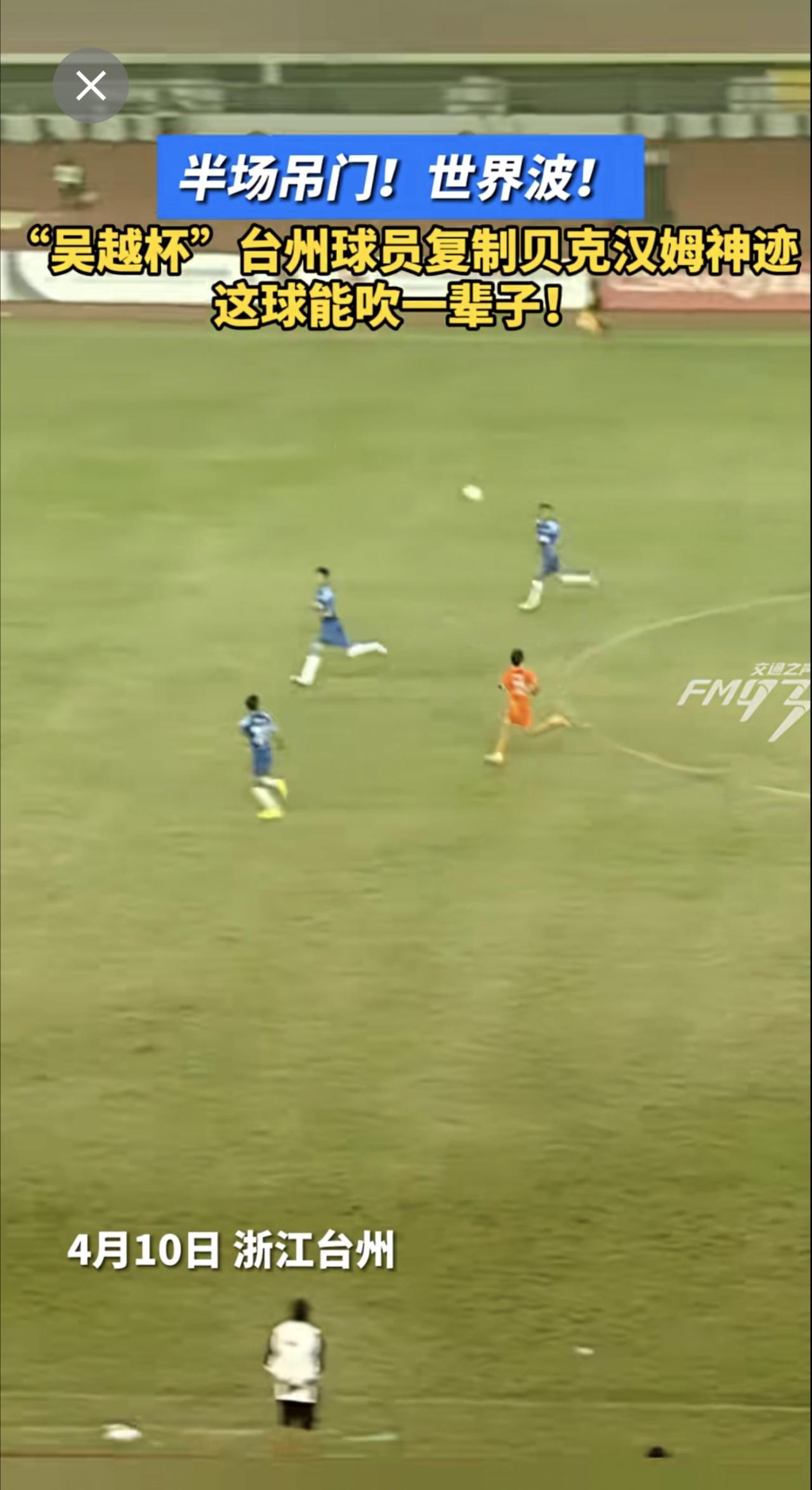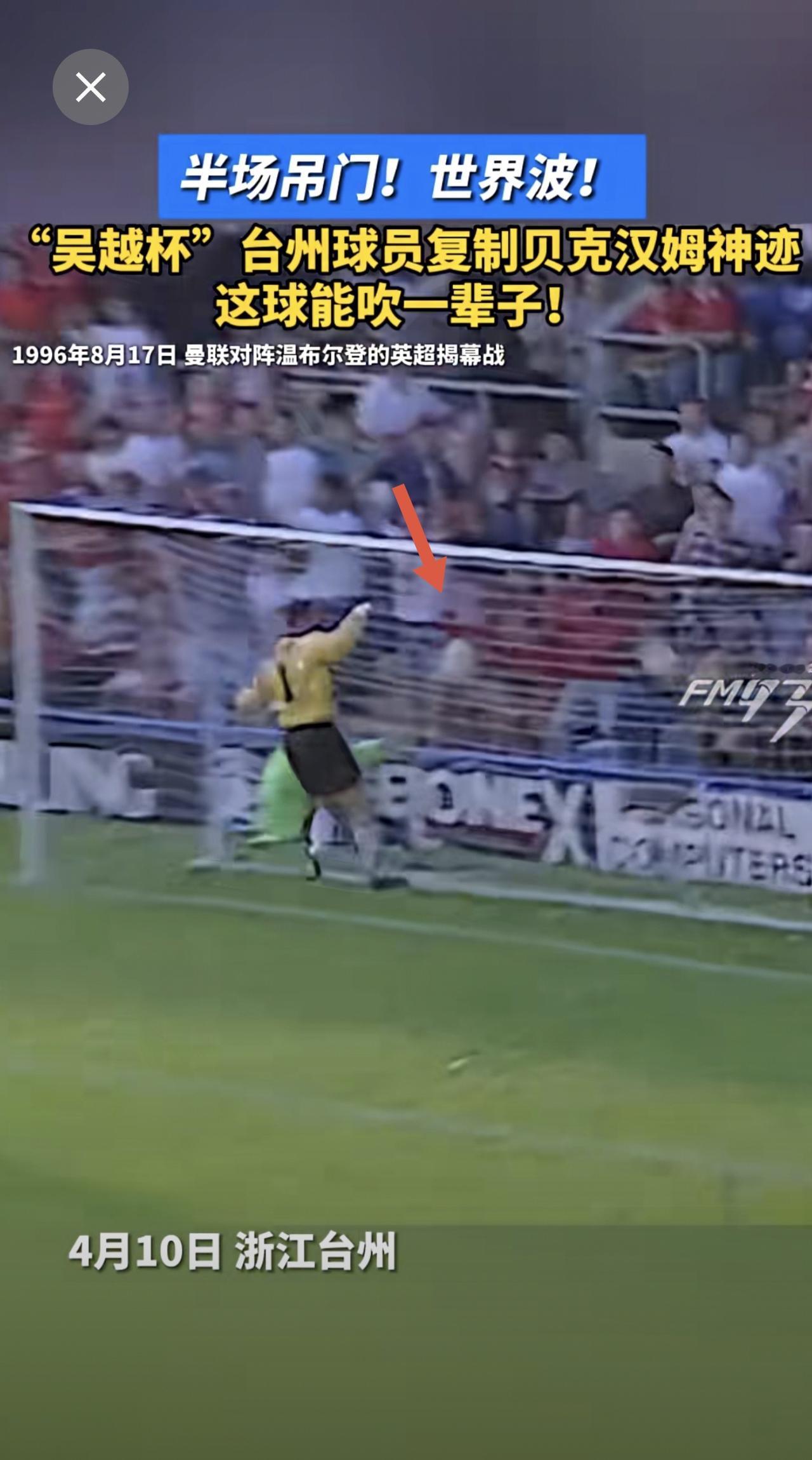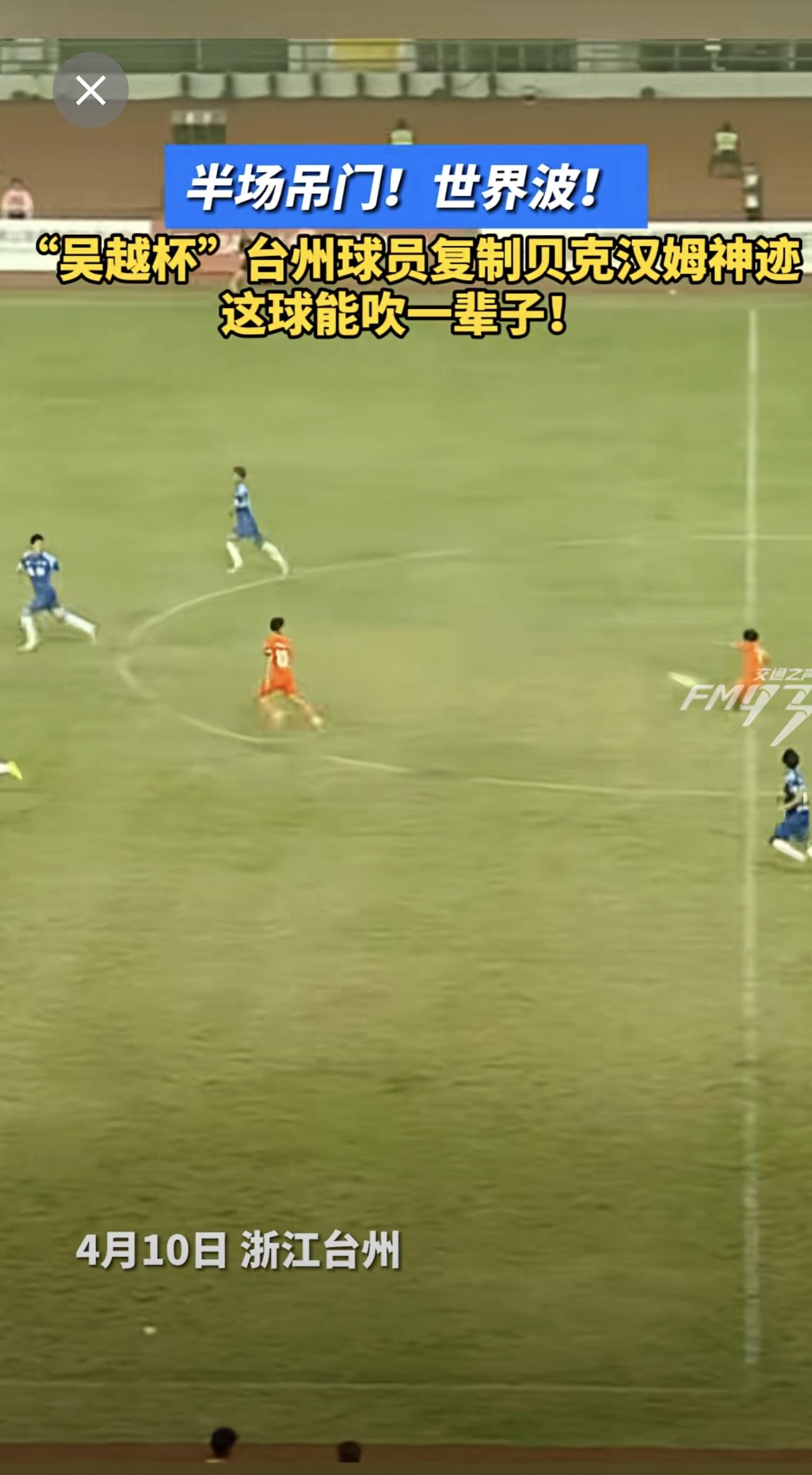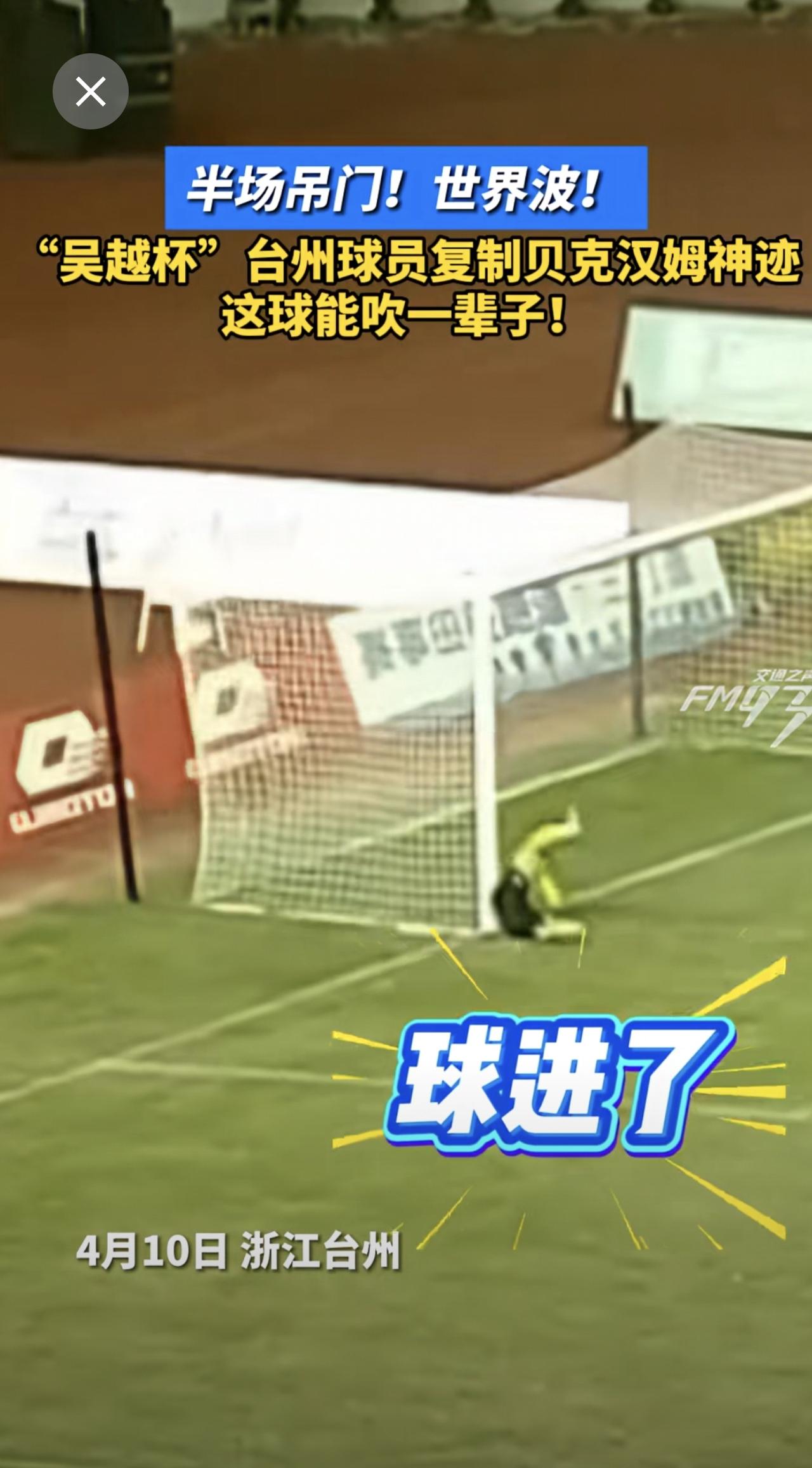 半场吊门!世界波!“吴越杯”台州球员复制贝克汉姆神迹,这球能吹一辈子!吴越杯 世