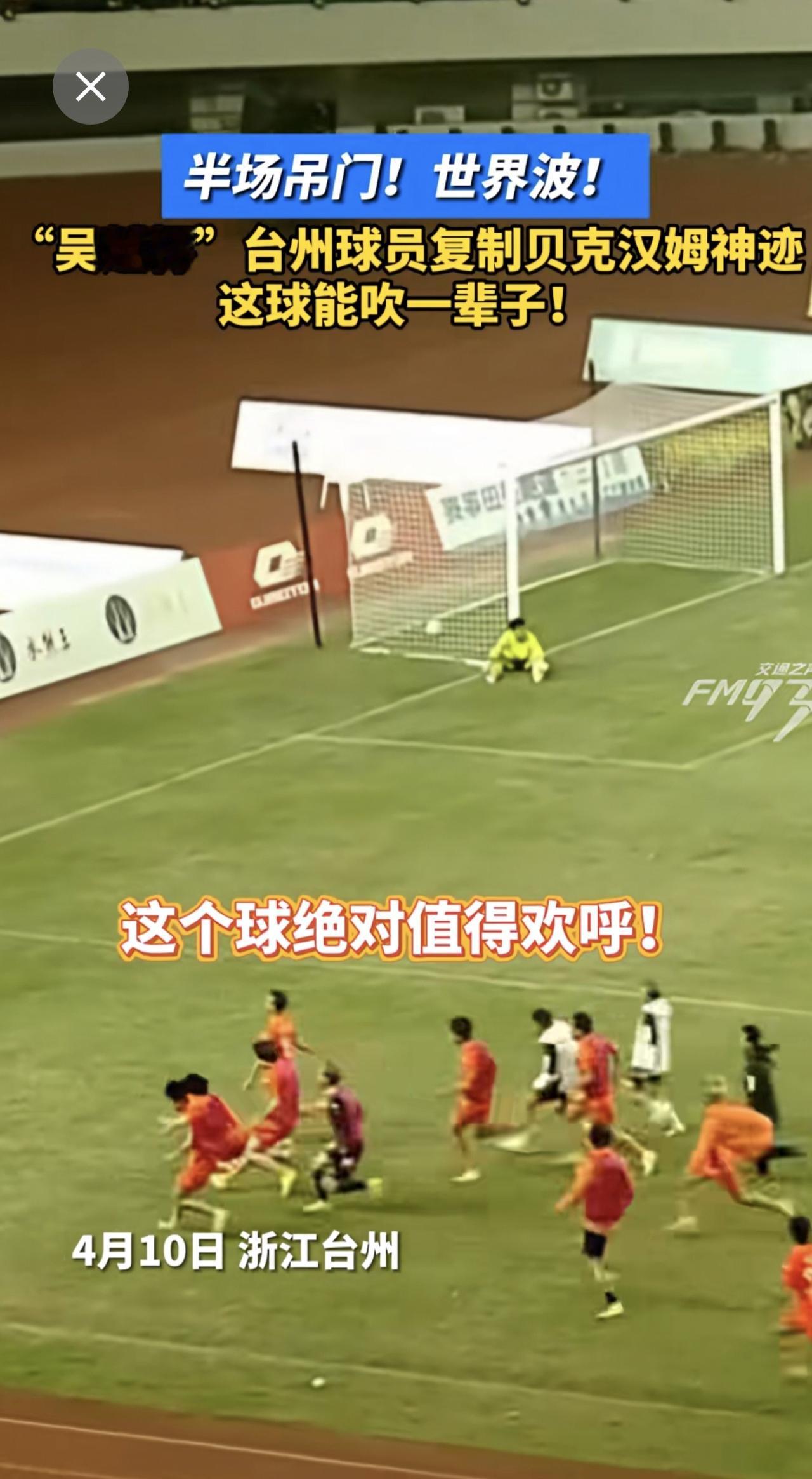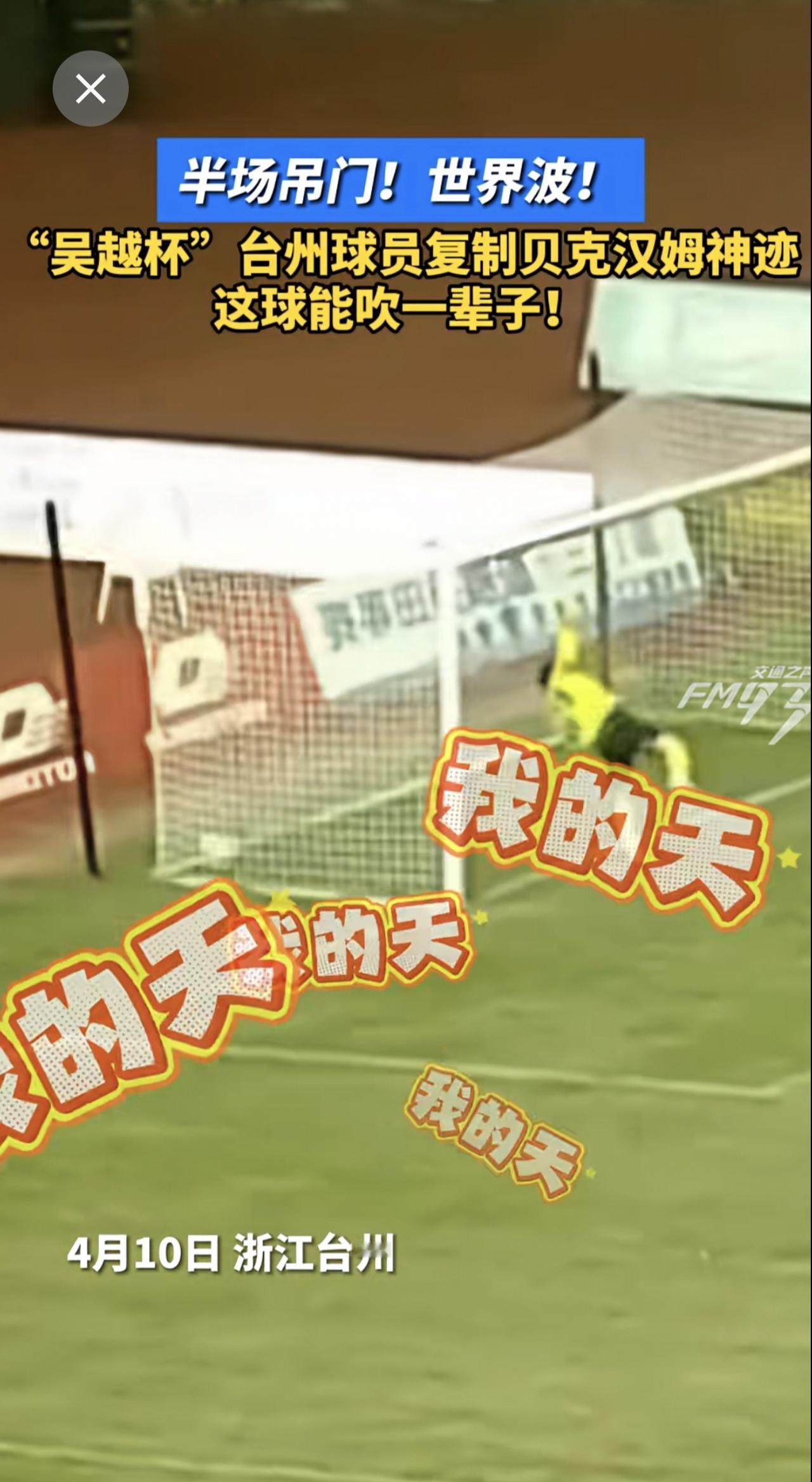 半场吊门!世界波!“吴越杯”台州球员复制贝克汉姆神迹,这球能吹一辈子!吴越杯 世界波