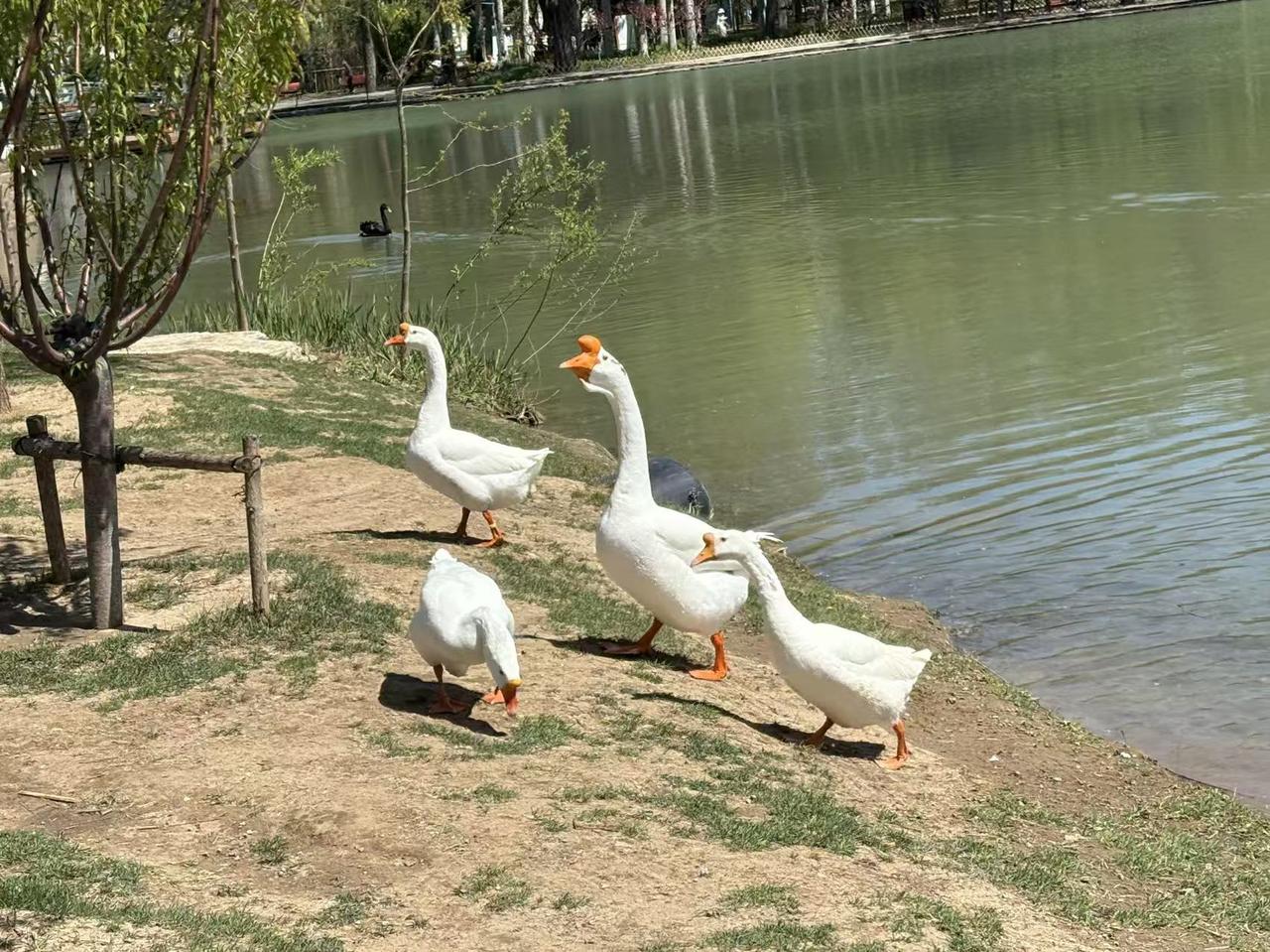 春天很美,到处鲜花,绿荫,各种动植物都在春天醒来,鱼在水中畅游,野鸭岸边玩耍,各种鲜花爭奇斗艳