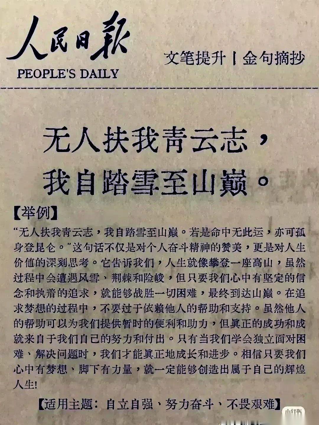前面九十九篇都在喊“要坚持”,突然有一篇,直接把灯塔、青松、古人全都搬到了你眼前,分数能一样吗?