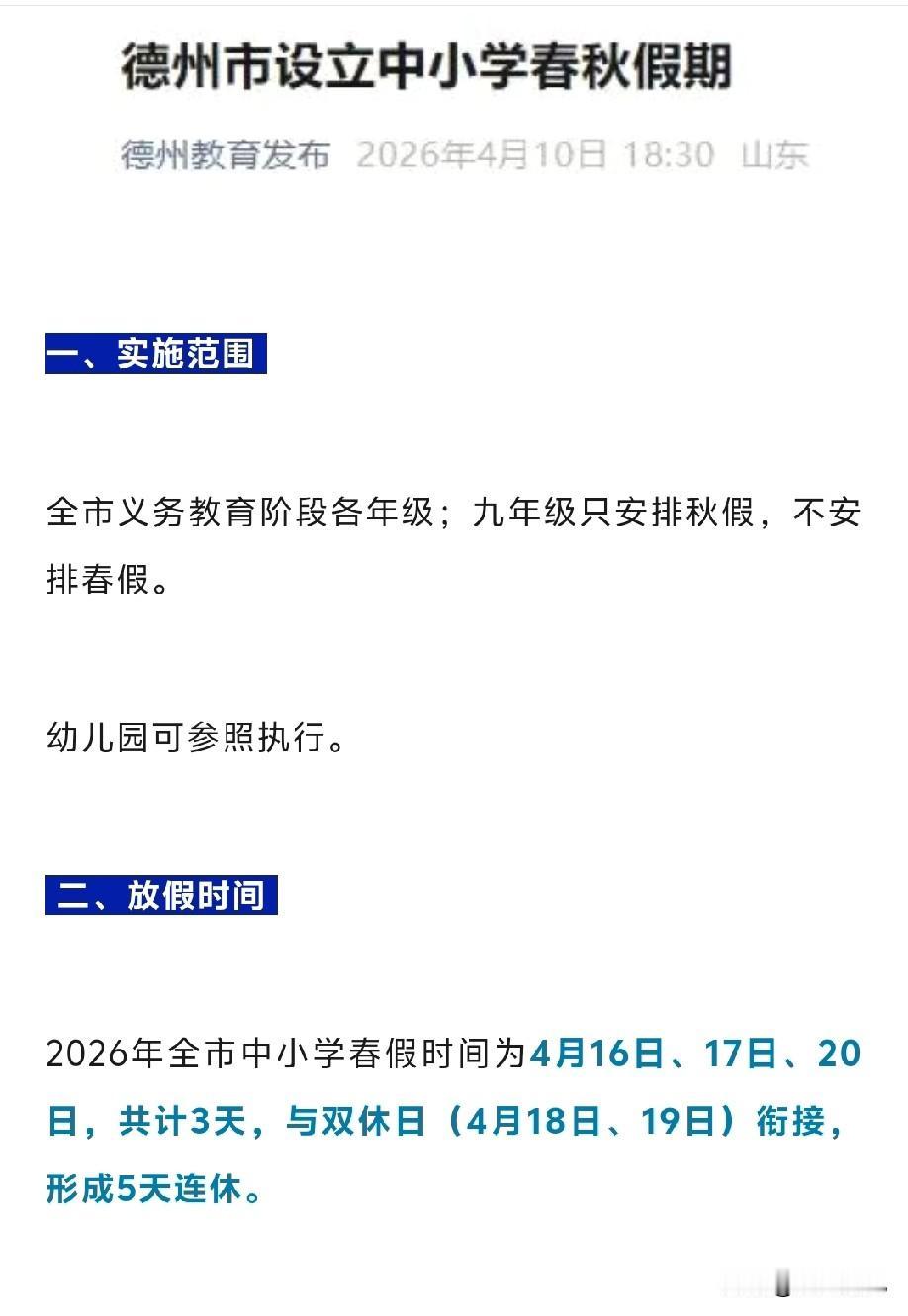 日照连休8天,德州连休5天,青岛的春假还会远吗? 昨天,德州发布春假放假时间,