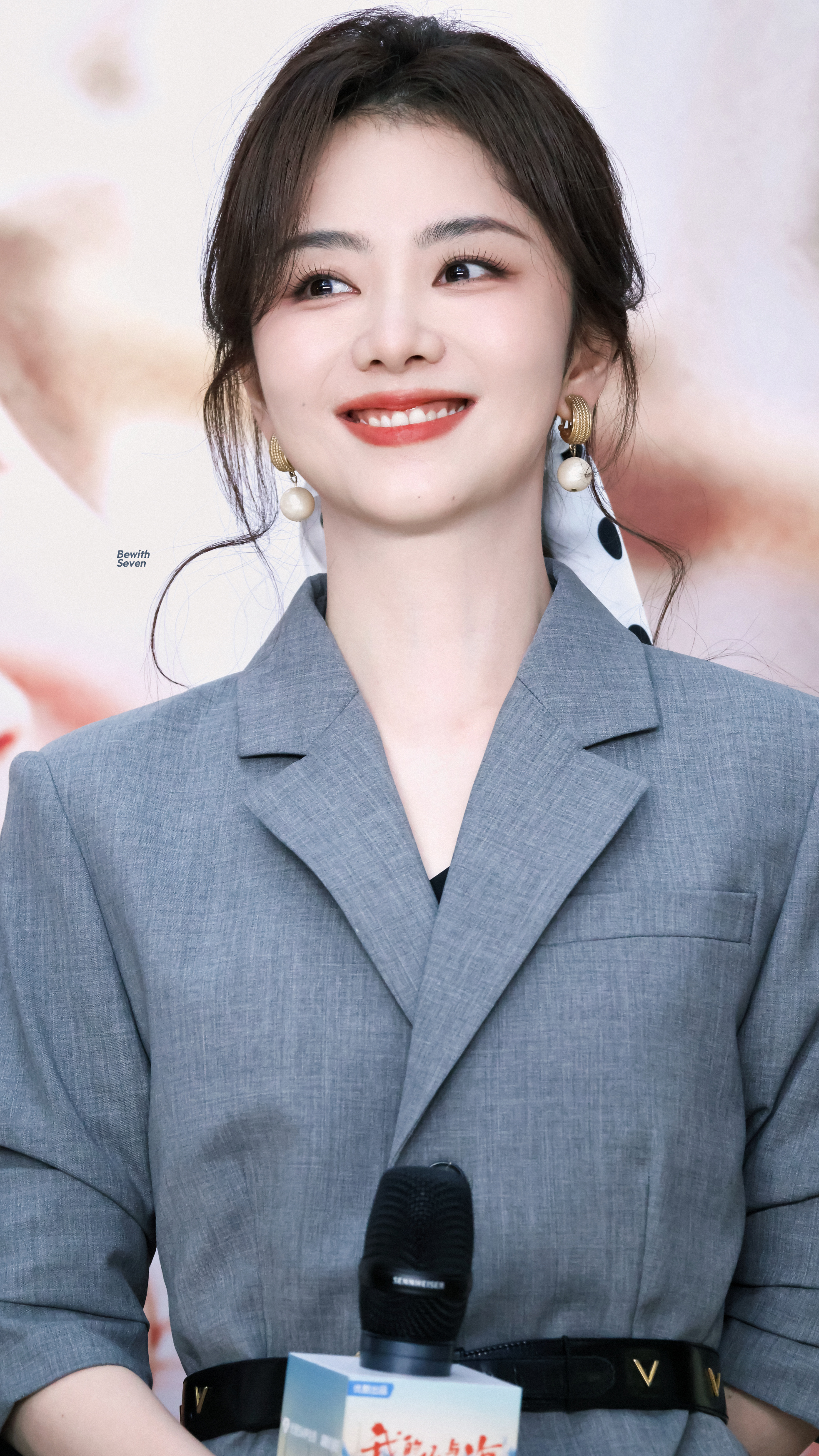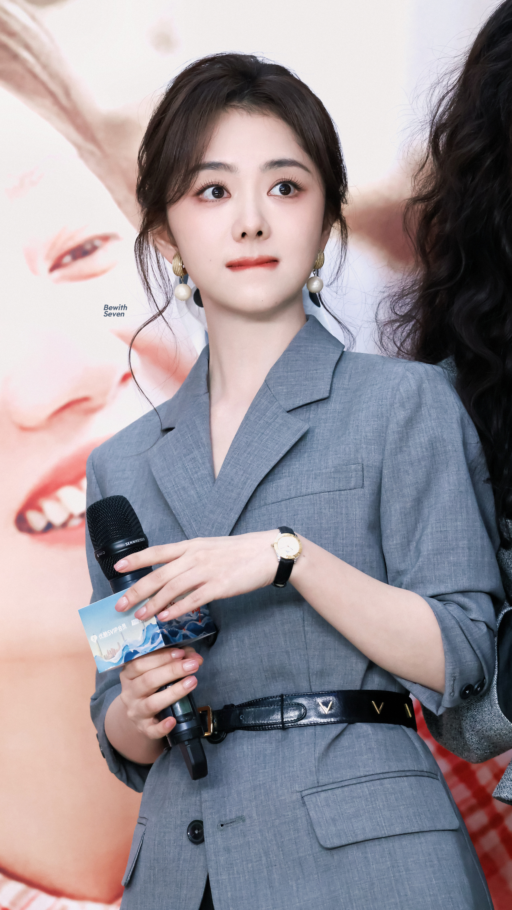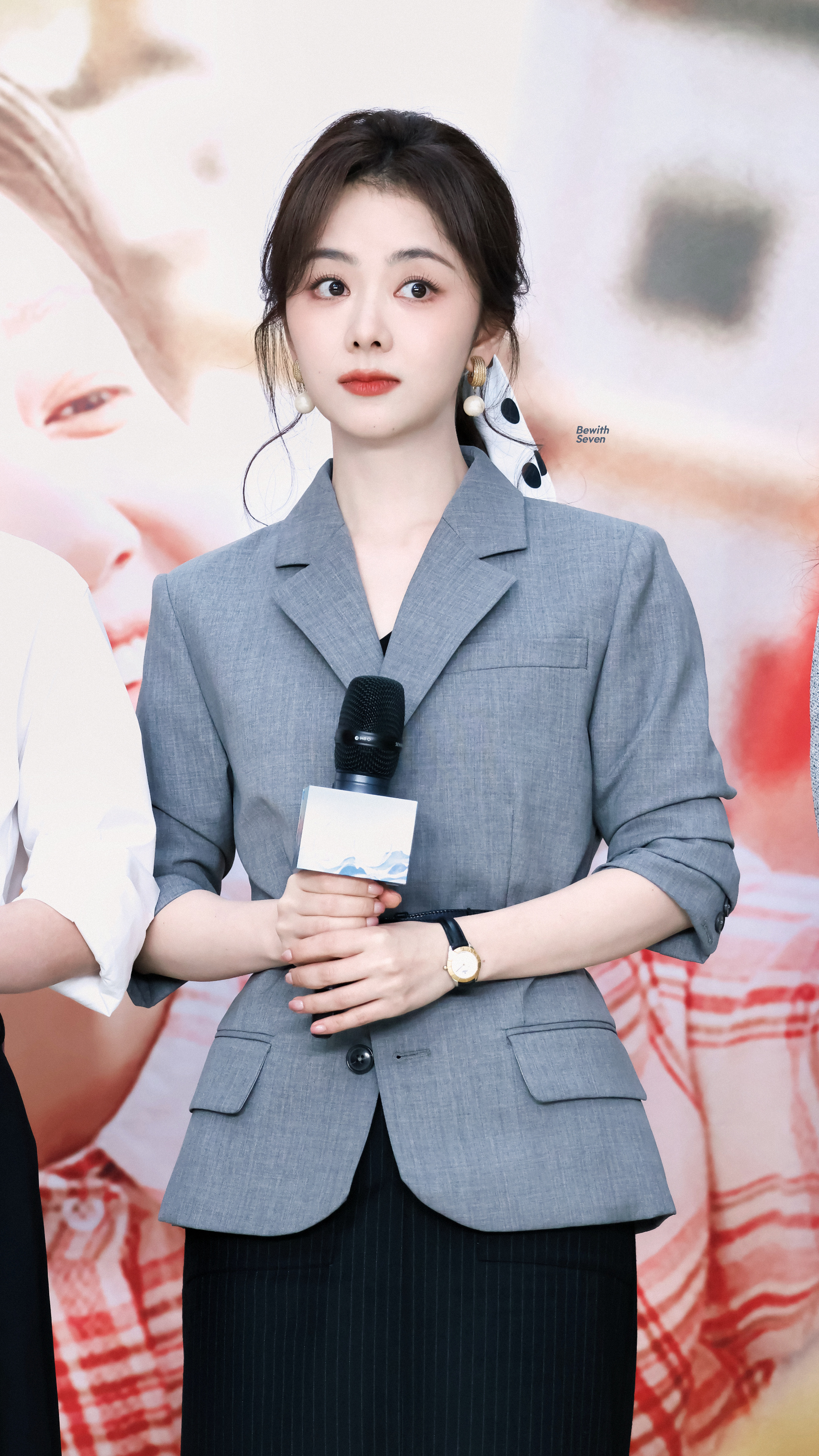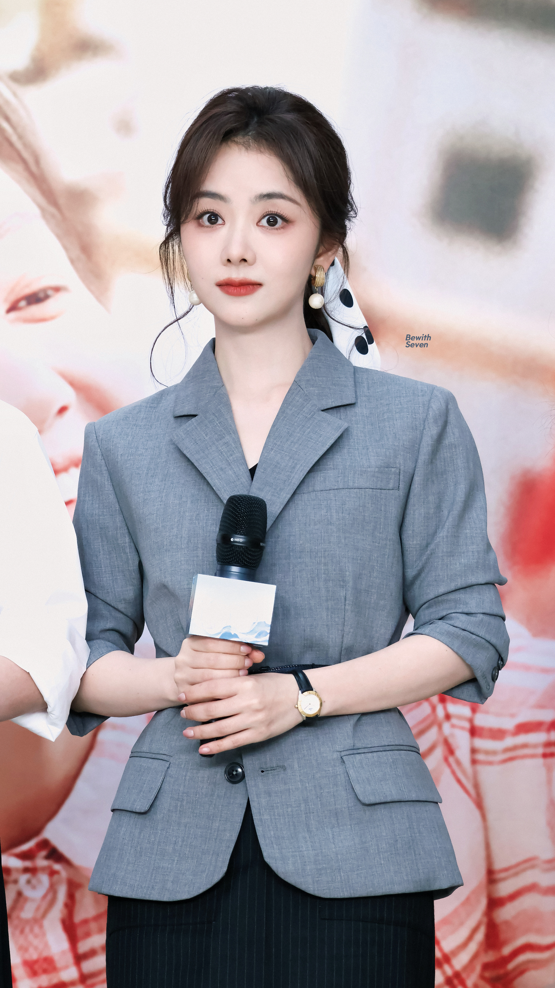谭松韵 利落西装邂逅温柔长裙,波点发带中和了职场的严肃,多了几分甜酷。