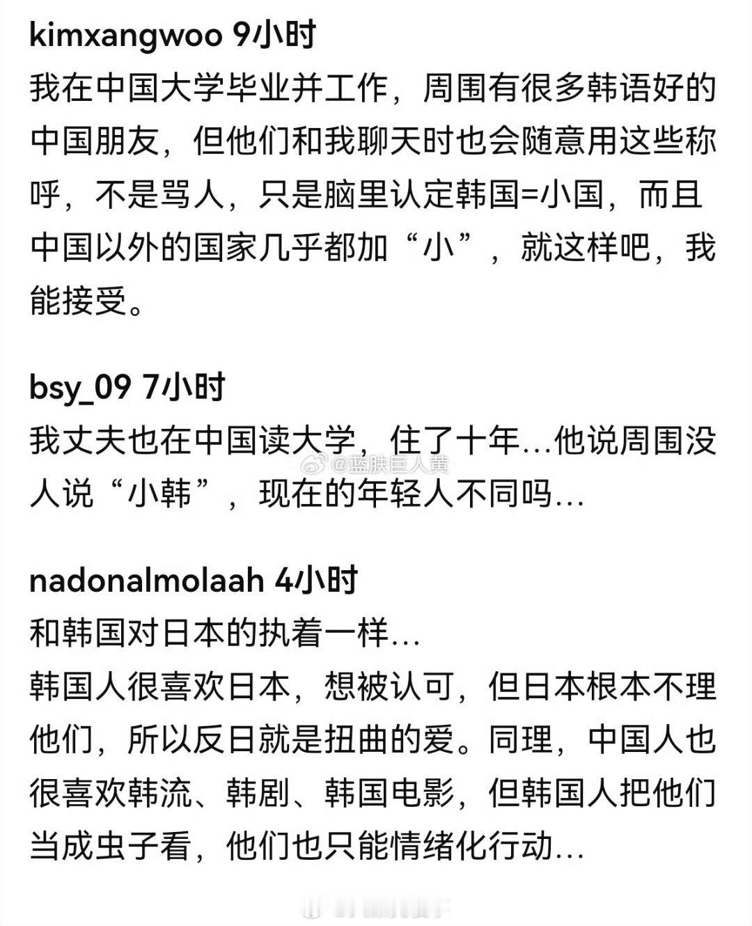 韩国人称被叫小韩感觉不适有一说一,肯叫韩国人小韩的已经是最喜欢韩国的那一批中国人