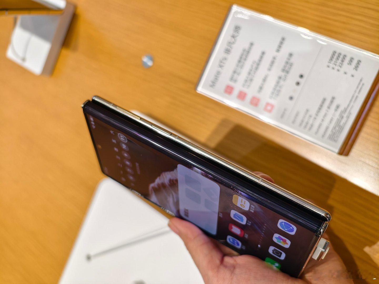 这还是第一次摸华为的三折叠。屏幕好大啊!折叠后居然也不怎么厚重。怎么做到的?当然