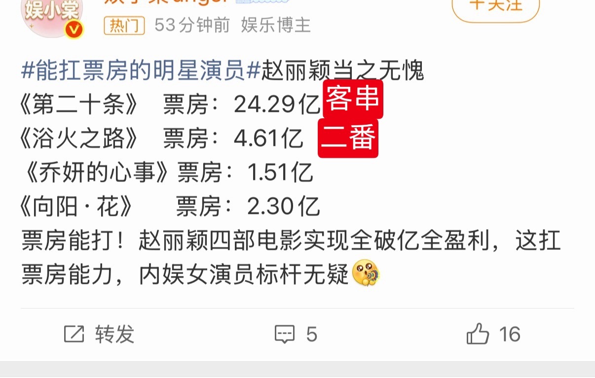 能扛票房的明星演员看到这个我笑了,拿了这么多部女主电影一点水花都没有请问扛在哪?