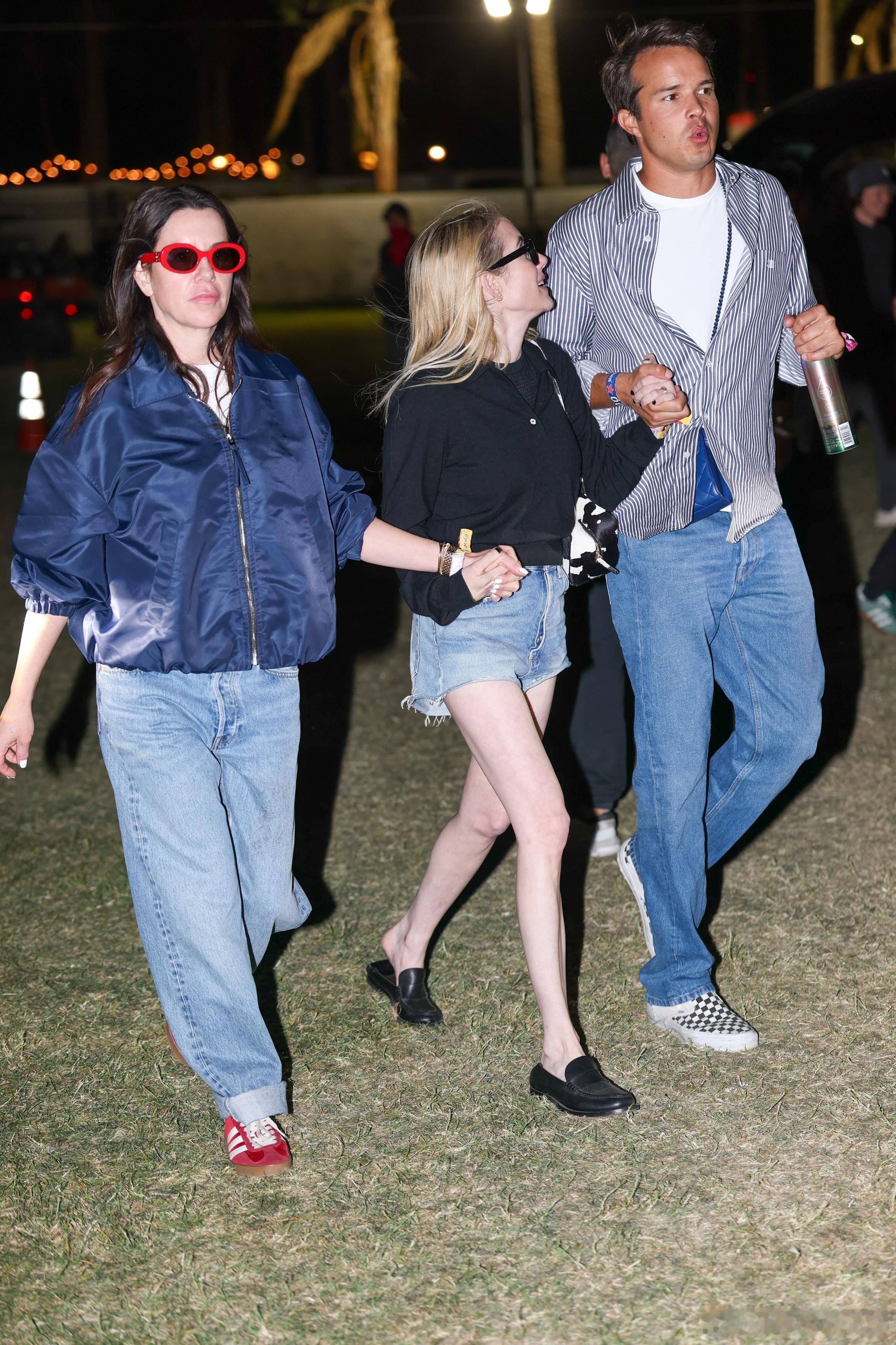 科切拉音乐节第一天,Emma Roberts艾玛罗伯茨身着热裤露出细长腿和朋友一