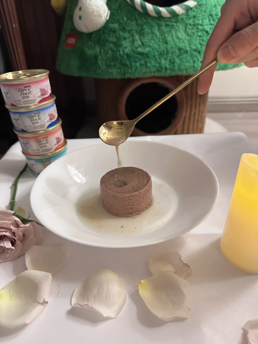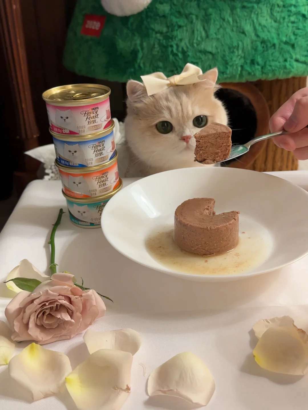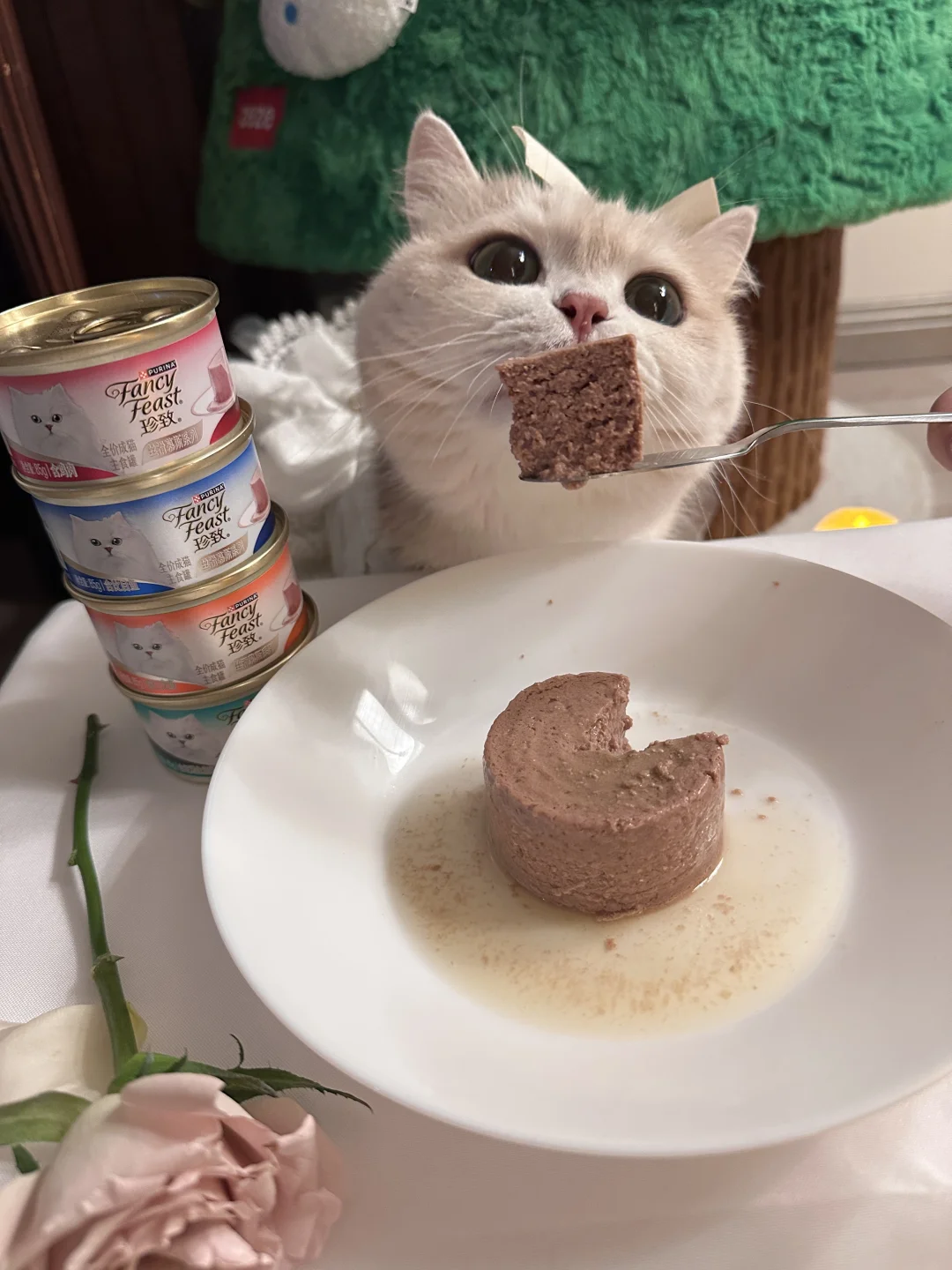 小薄荷:那我准备开动了。这个"虹鳟鱼和虾"的尊的好好吃。而且还是中国限定口味。只有此等美味才能配得上本喵的胃
