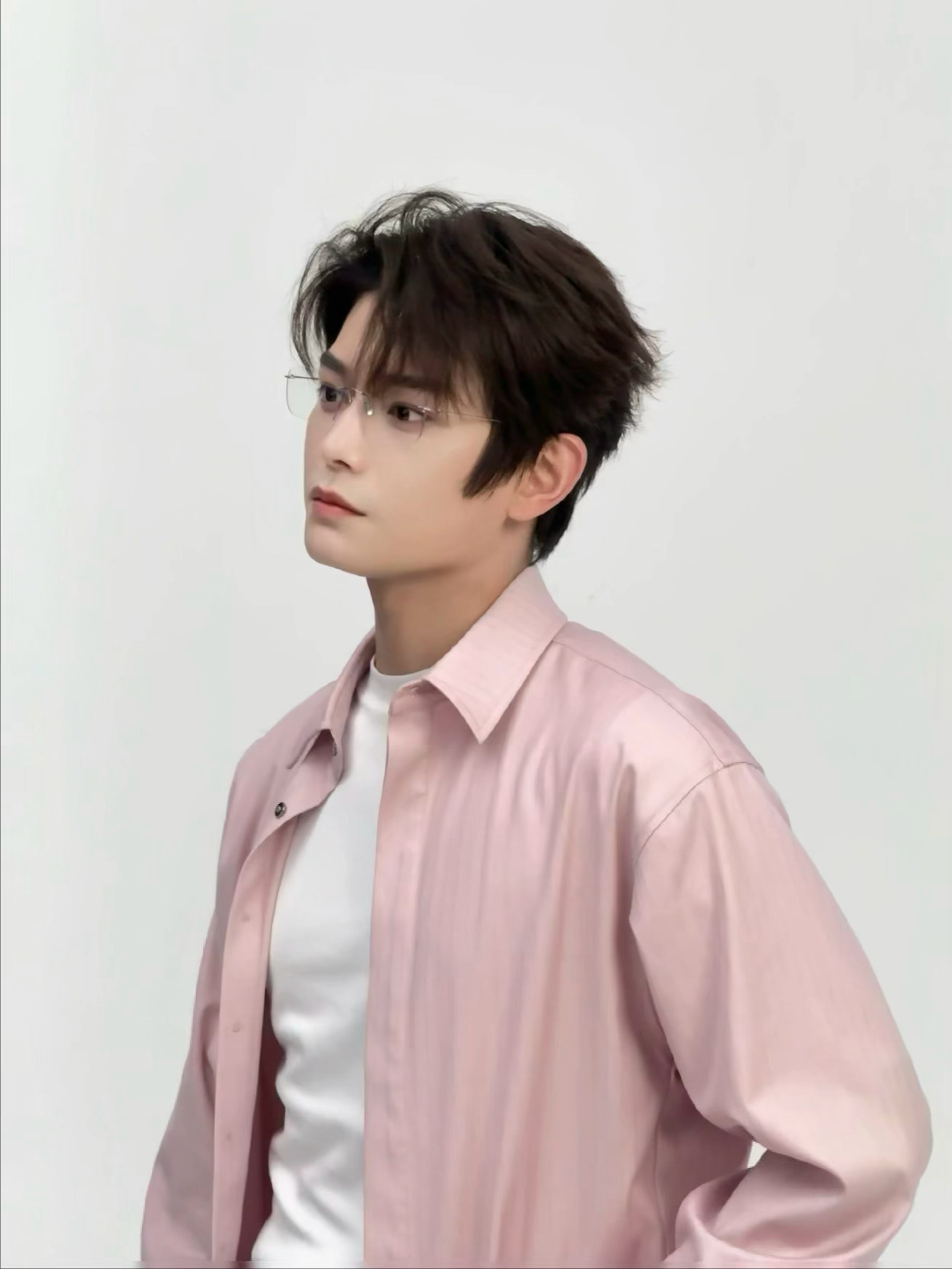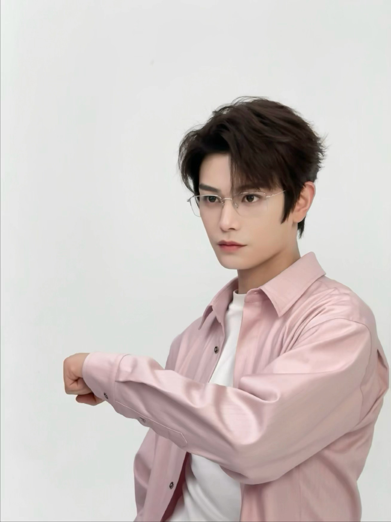 嫩粉色衬衫戴眼镜的丁禹兮好青春活力