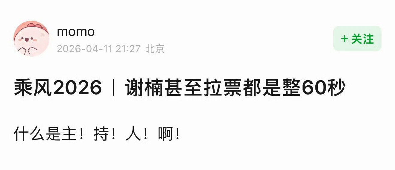 谢楠主持人的素养 乘风2026舞台,谢楠用整60秒拉票诠释专业,清醒发言戳中人心,控场力与共情力双在线,不愧是主持人天花板
