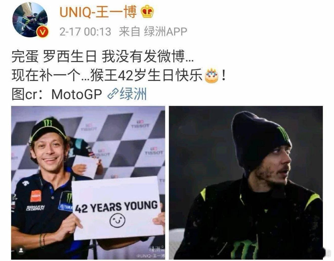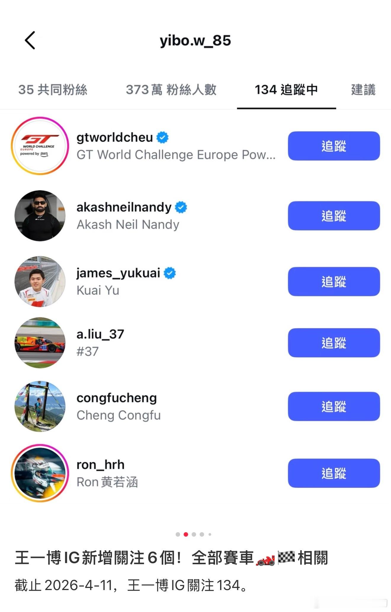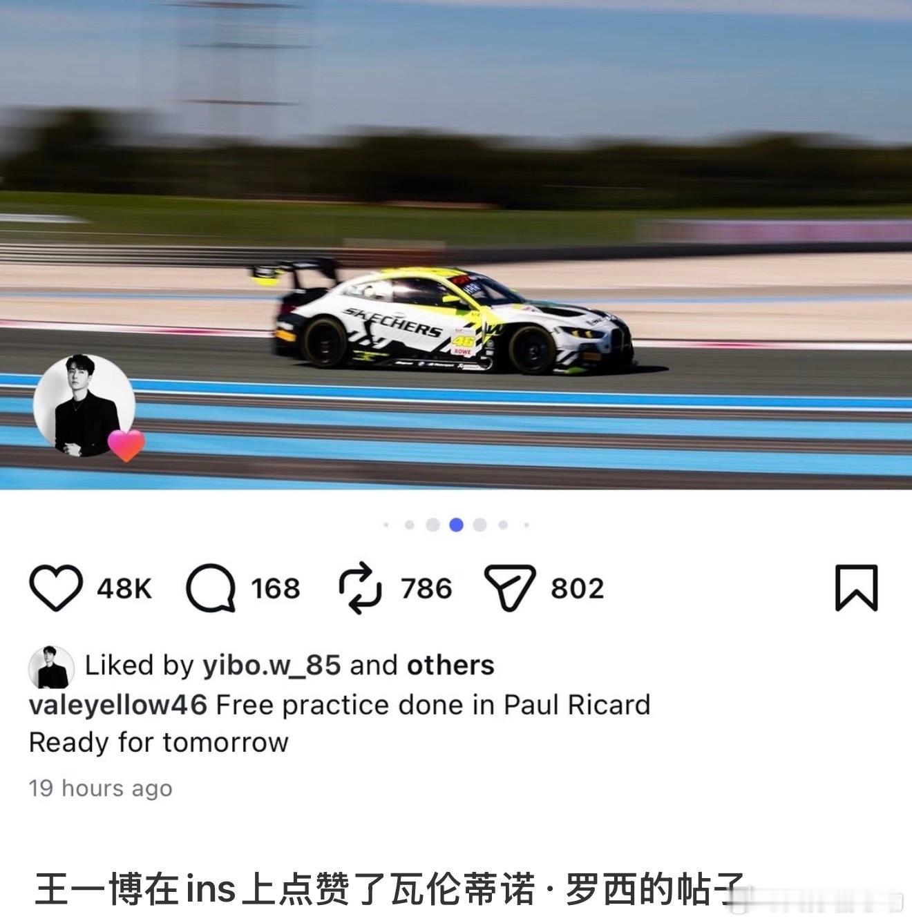 王一博 博ins新关注六个(赛车相关)还点赞了罗西,博博的偶像