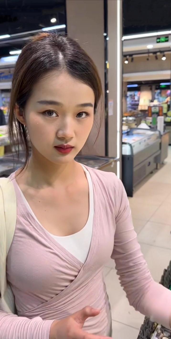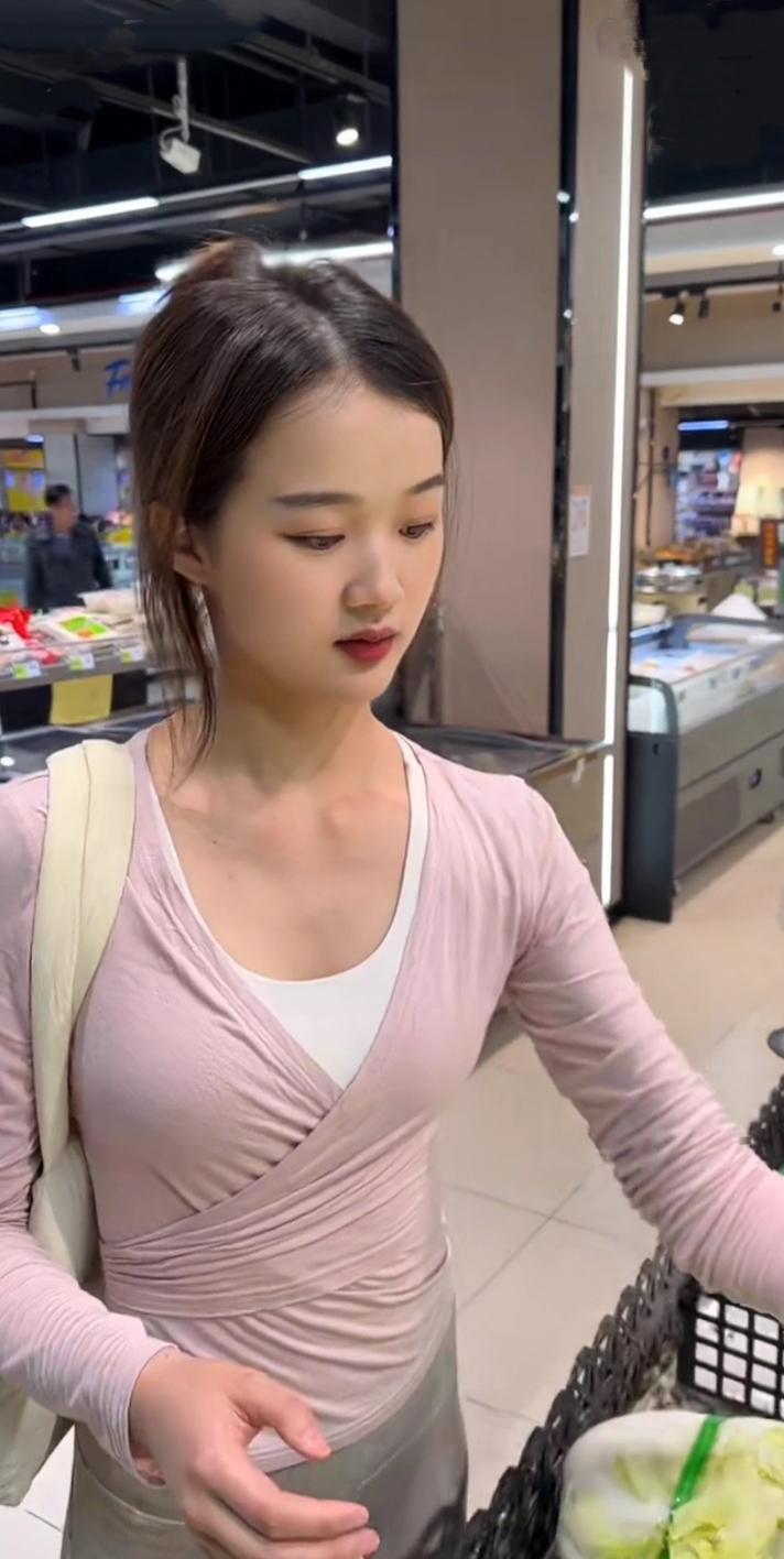 超市偶遇一位买菜的小姐姐,长得很耐看,还有那迷人的小眼神,让你心动了吗?